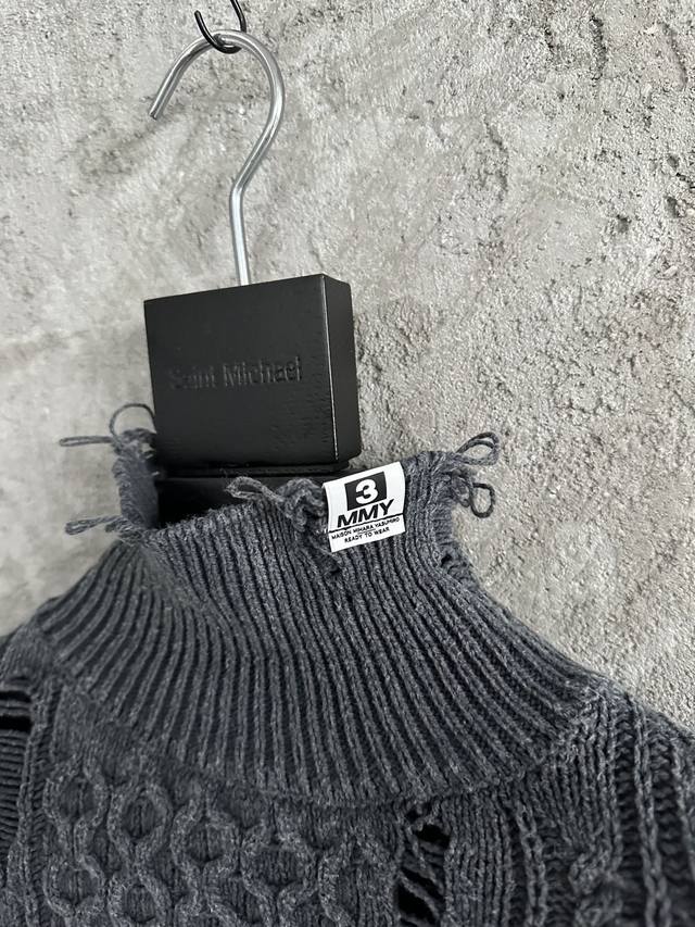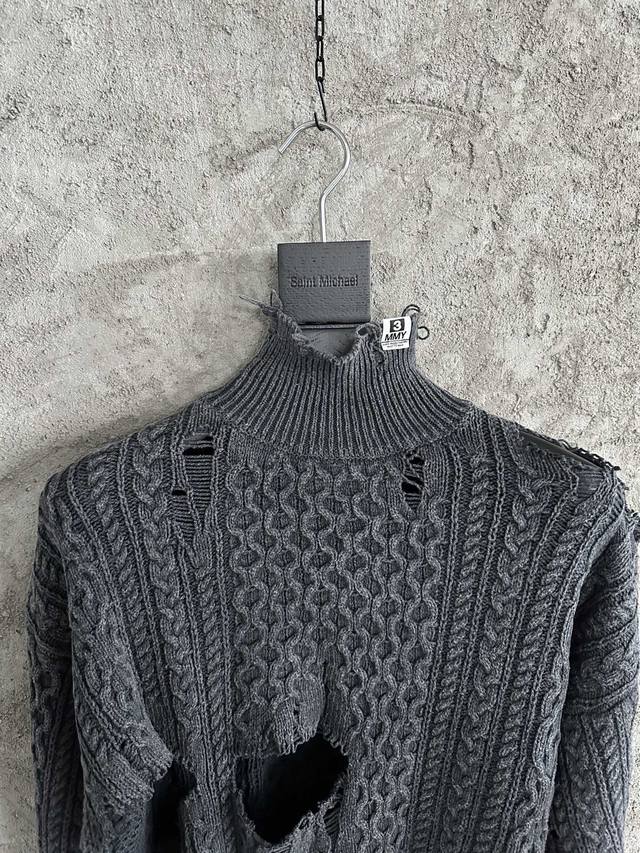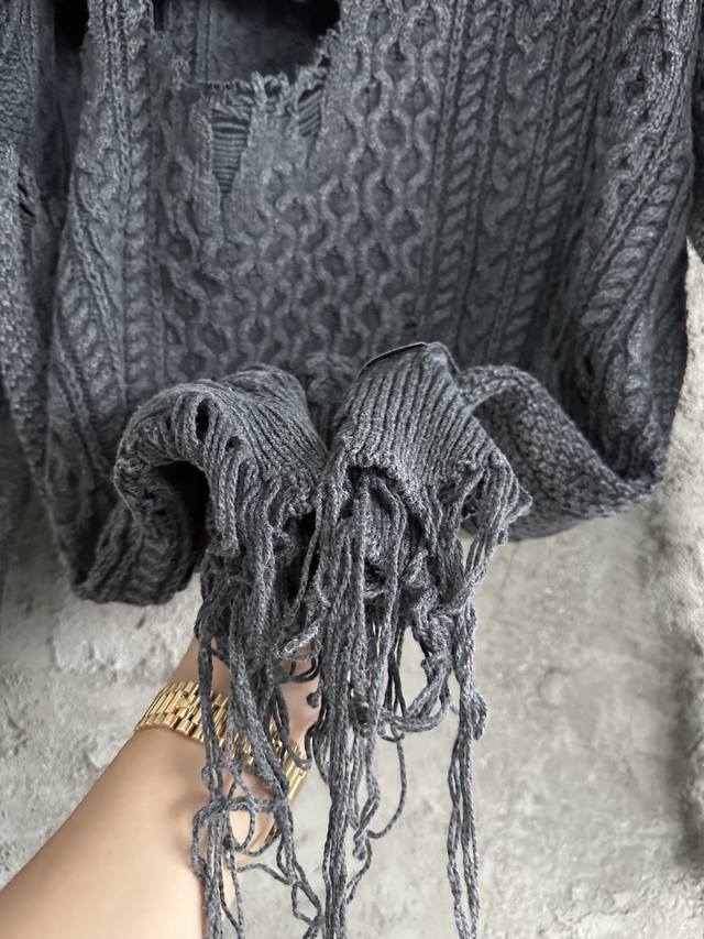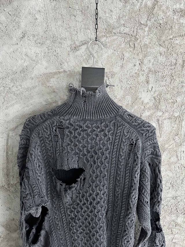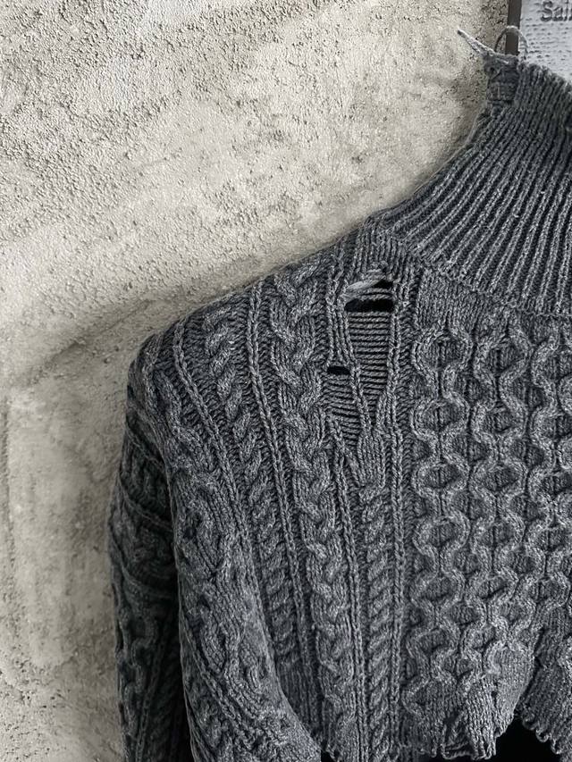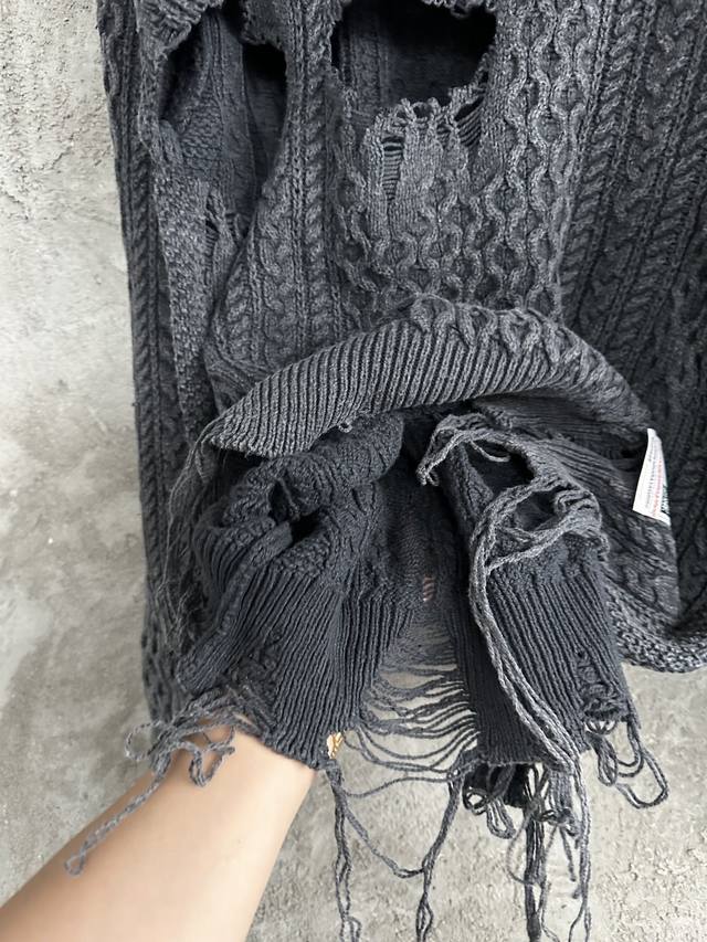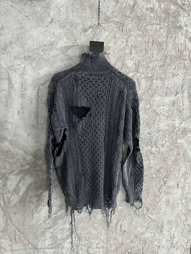Mmyss Heavy-Duty Distressed Sweater, Custom Made with Special Yarn, 100% Cotton, High-Density Knitting on Imported Machines, Post-Production Hand-Distressed Distressed Features, Heavy Sand Wash + Water Wash, Frayed Neckline and Hem. Sizes: 44, 46, 48 (Os). (DDD)