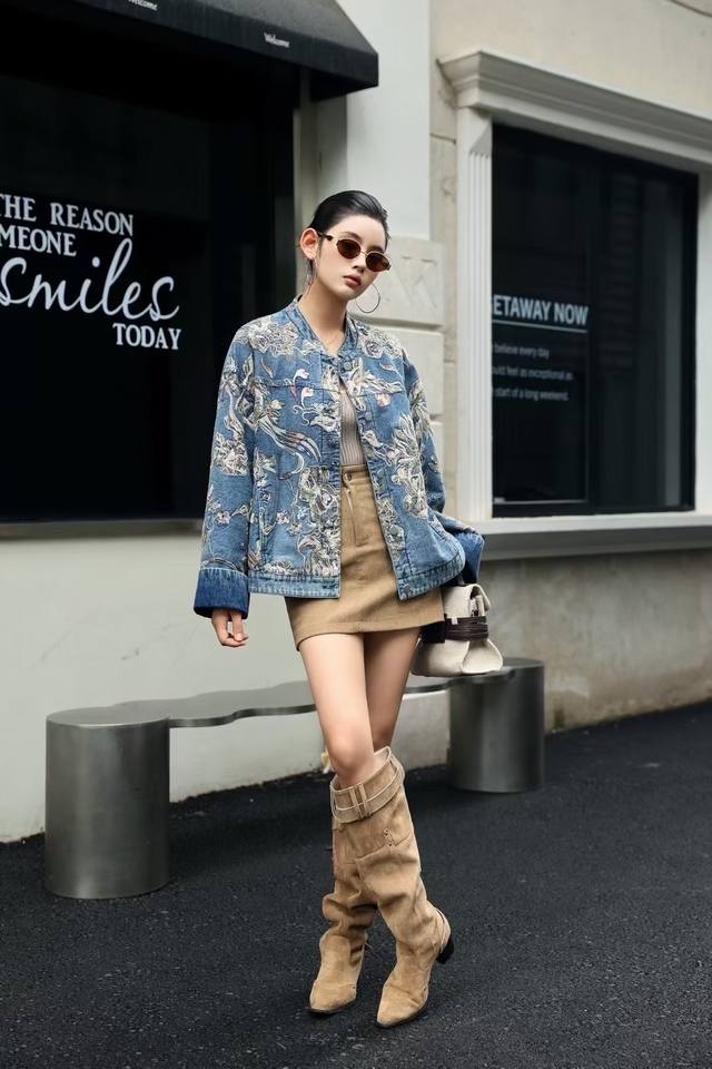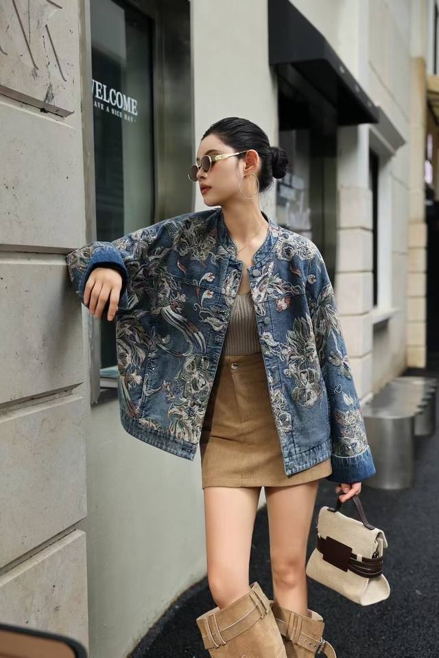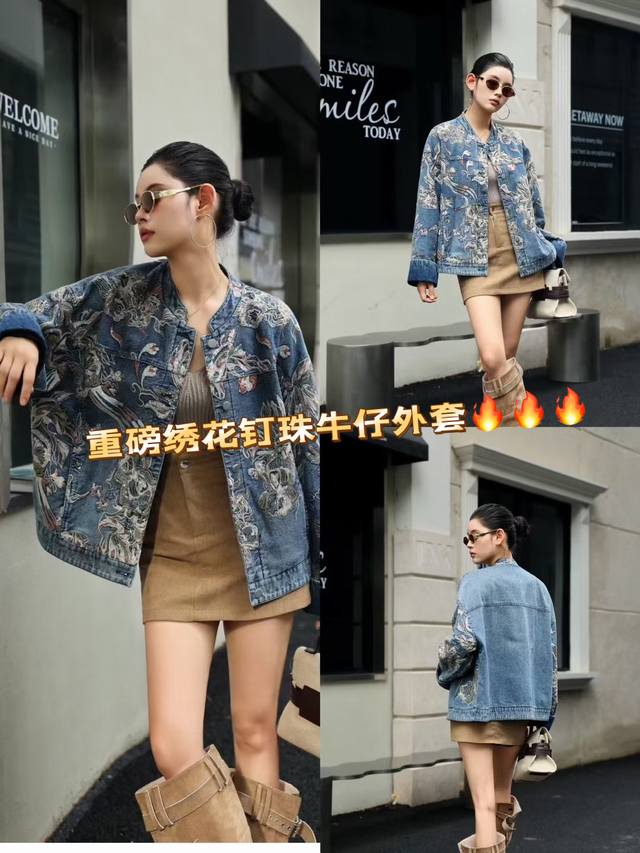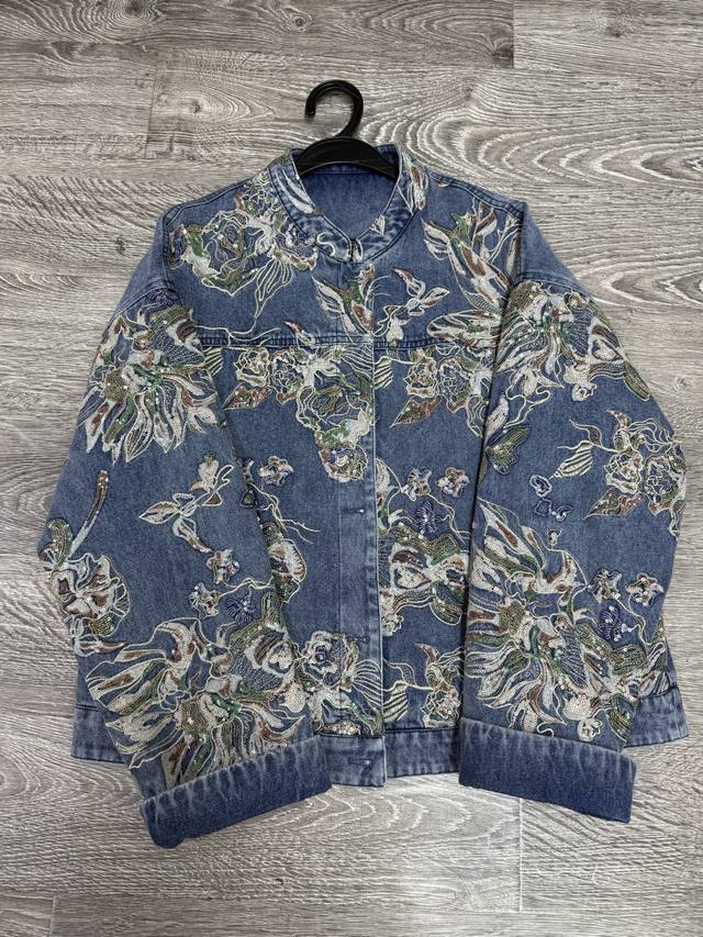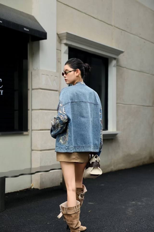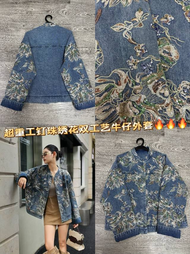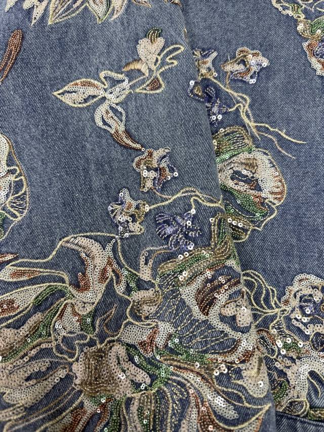 Modern charm, heavy sequin embroidery, retro denim beaded jacket, high-end and f