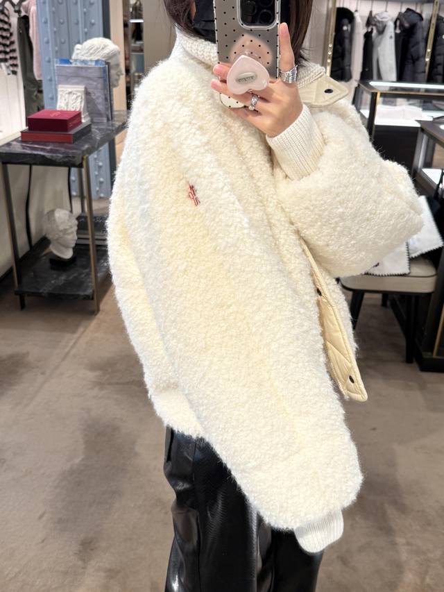 Mon25F Autumn/Winter New Teddy Fleece Down Jacket. The outer layer is a fluffy, cloud-like teddy fleece, and the inner filling is generously padded. A single-color, must-have for winter. Sml DDD