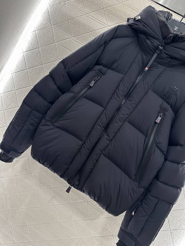 Moncle* 25Ac New Arrival: Nylon Hooded Down Jacket, Custom Made with Imported Windproof and Waterproof Nylon, featuring authentic craftsmanship and enhanced warmth. Filled with white goose down, the jacket is lightweight and warm. Features include a hooded zip-up design, rectangular embossed details, ribbed elastic cuffs, and a logo on the outer sleeve zip-up pocket that echoes the logo on the main body. The diagonally cut zip-up pockets are both practical and warm. Exquisite details elevate the jacket's style, combining warmth and fashion. Customized fabrics and trims. Filling standard: National standard 90% down. Filling material: High-quality white goose down. In stock. Colors: Black, White. Sizes: Xs, SML, XL.