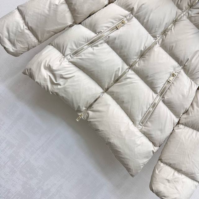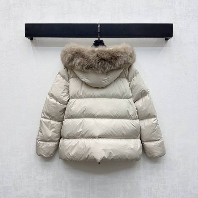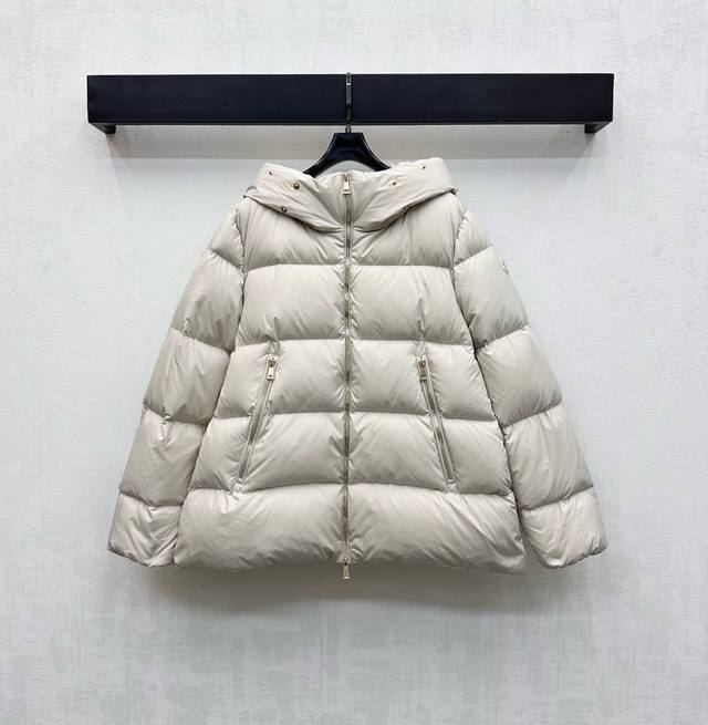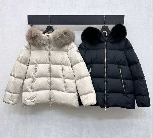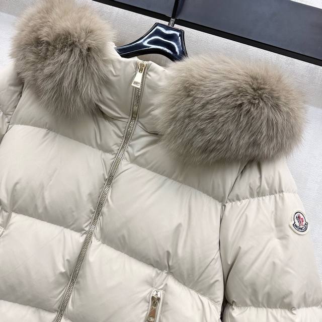 Moncle*2025 New Arrival: Custom-Made Down Jacket with Detachable Hood and Fur Collar. Made of YB Imported Recycled Nylon. Lined with White Goose Down. Lightweight and Warm. Fur Collar with Removable Snap Buttons for Windproof and Fashionable. Zippered Pockets with Signature Badge Embossed on the Sleeves to Highlight the Brand. Rectangular Embossed Pattern with Open Front and Double-Ended Zipper Adjustment for Layered Design. Fabric and Accessories Developed. Hooded Jacket Cut for Warmth and Style, Eliminating Traditional Bulkiness. Filling Standard: National Standard 90 Down. Filling Material: White Goose Down