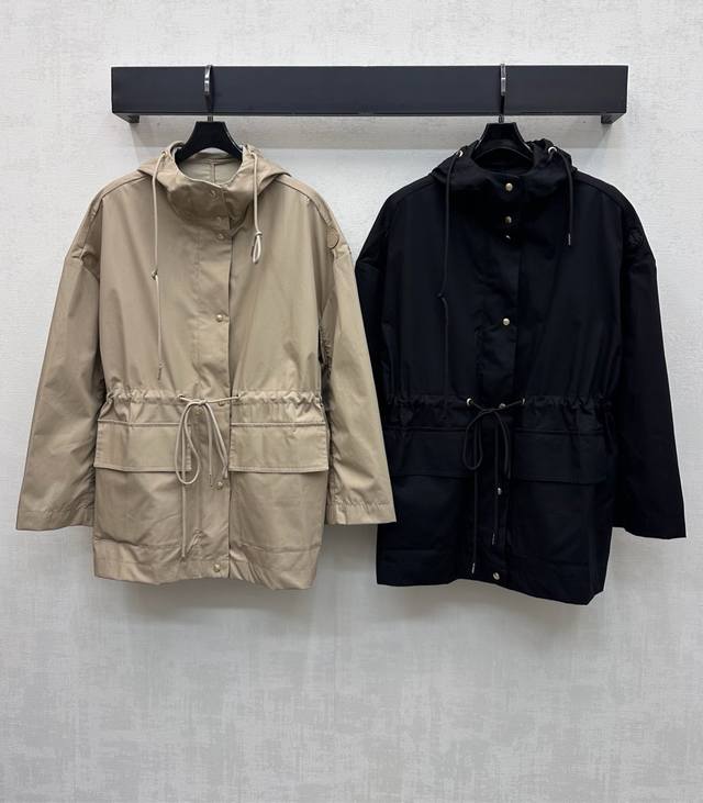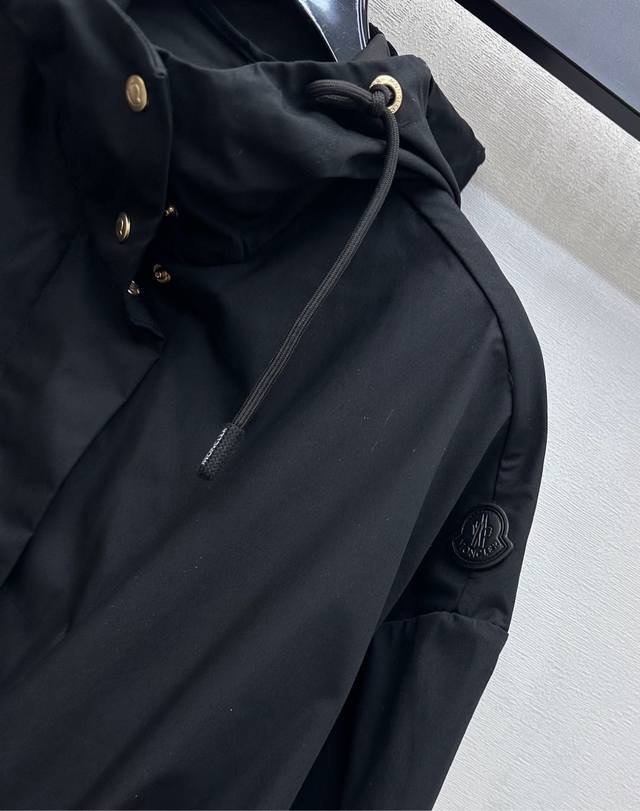 Moncle*2025 New Arrival: Hooded Drawstring Trench Coat, Custom Yb Imported Trench Coat Material, Crisp, Comfortable, and Stylish. The hooded, drop-shoulder design, combined with drawstring adjustment, adds a sense of style and creates a relaxed and casual look. The front is embossed with snap buttons, and the outer sleeves are adorned with a signature badge, highlighting the brand's identity. Symmetrical flap pockets on both sides add visual interest. Developed fabrics and accessories. This hooded trench coat is a must-have item that combines fashion and practicality. Ideal for everyday wear, layering, and exuding British elegance. High-quality version, 2 colors available.
