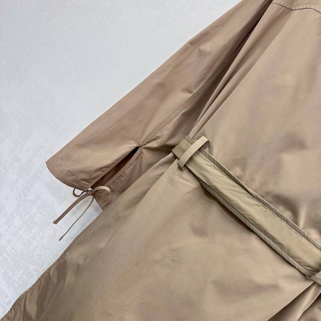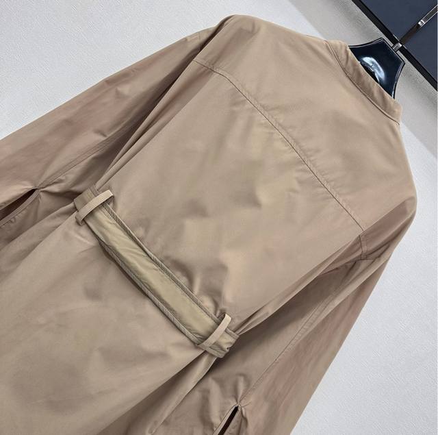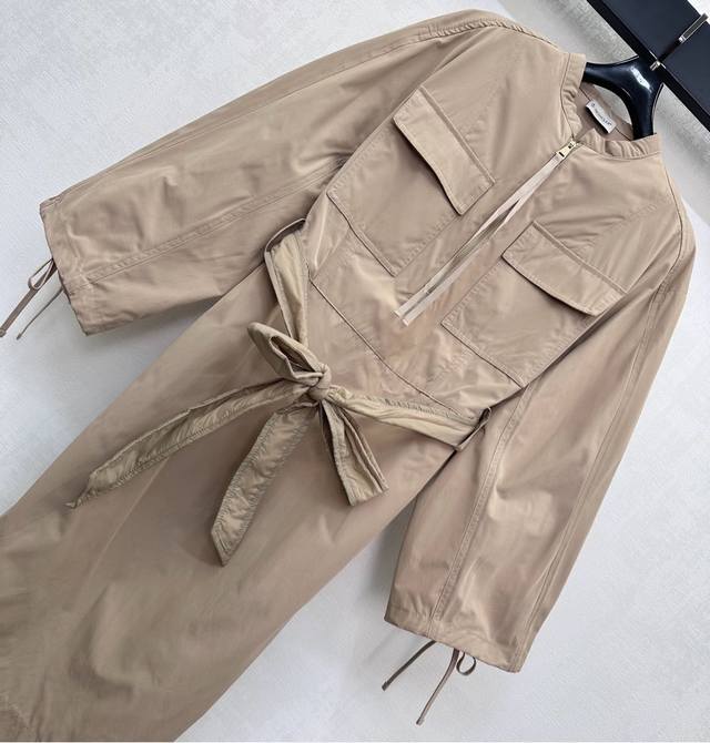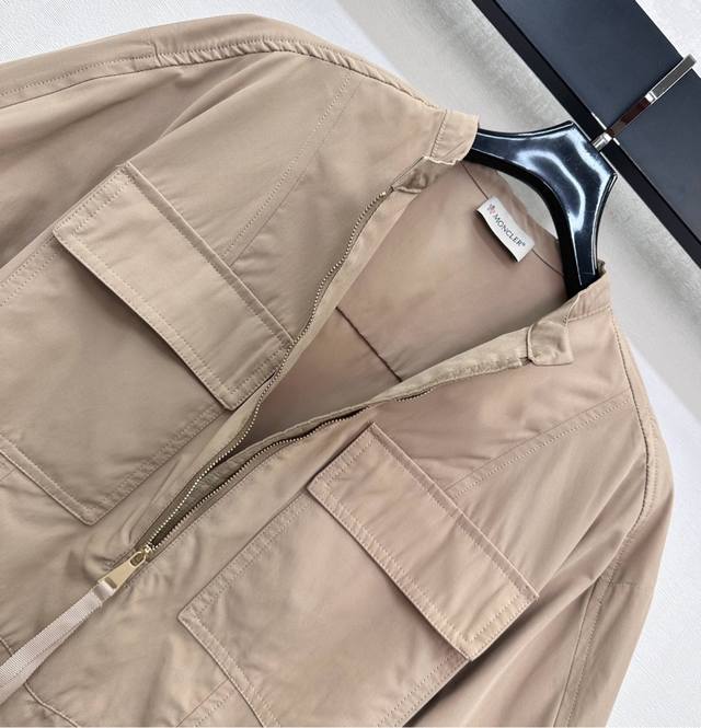 Moncle*2025 New Arrival: Stand Collar Belt Dress, Custom Made with Imported Trench Coat Material, Crisp, Comfortable, and Stylish. The dropped shoulder design, combined with a half-open placket, embossed zipper adjustment, and symmetrical flap pockets on the chest, and drawstring cuffs, adds a sense of layering and creates a relaxed and casual style. The dress features a small stand collar and a tailored cut, making it a must-have item that combines fashion and practicality. Perfect for everyday wear, exuding charm and British elegance. High-quality version, available in 2 colors.