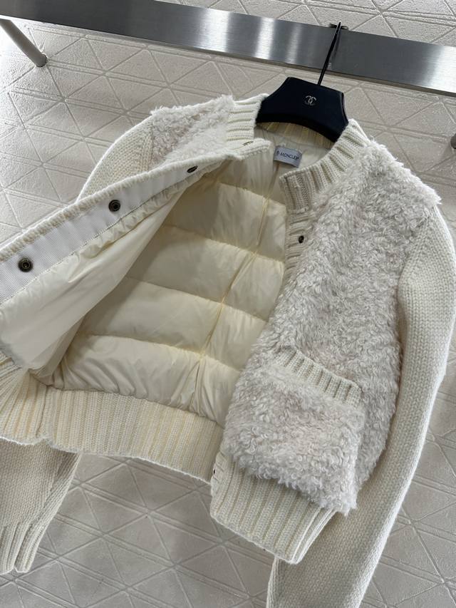 Moncle2025 New Arrival DDD Wool-Patched Knit Down Jacket DDD The entire torso is adorned with three-dimensional, fluffy teddy wool material, with ample down for a soft and comfortable feel. This round-neck, button-down, long-sleeved down jacket features wool-patch knit sleeves for guaranteed warmth. Clad in sleeve badges, it exudes brand style. The overall silhouette is structured and stylish, making it a top choice for cozy warmth in autumn and winter. Down Material: White Goose Down Down Down Standard: National Standard 90% Down Customized Fabrics and Accessories High-Version Version Available in Black and Apricot DDD