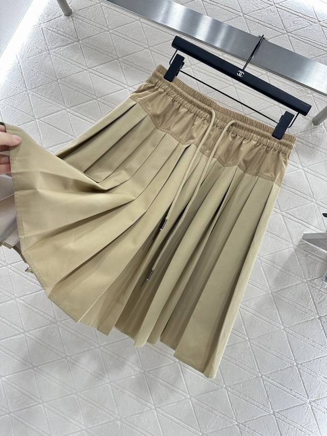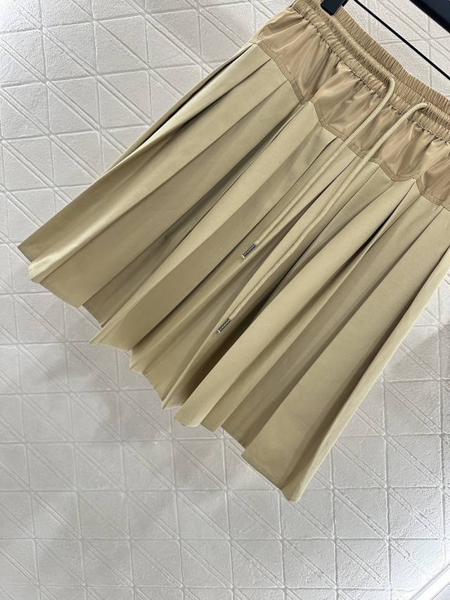 Pleated Drawstring Short Skirt Custom Yb Imported Nylon Twill Cotton Material Textured Glossy Cut for a Smooth Drawstring High-Waisted Pleated Short Skirt Elastic Waist and Drawstring Adjustable Fit for a Slimming Look The pleated design adds a playful, youthful touch to casual wear Customized fabrics and accessories Look for the high version in two colors