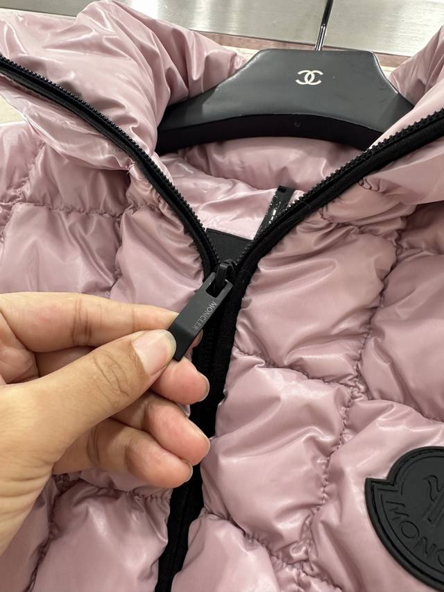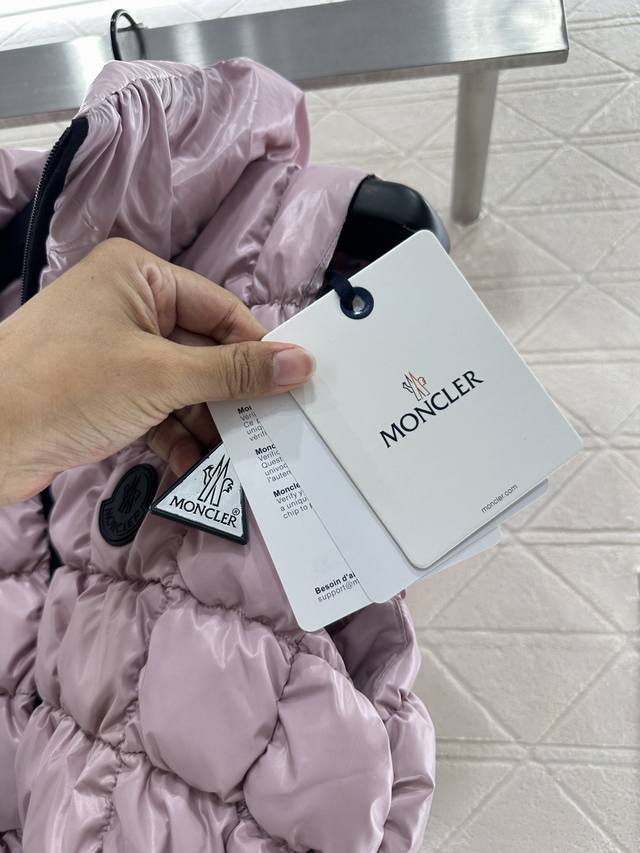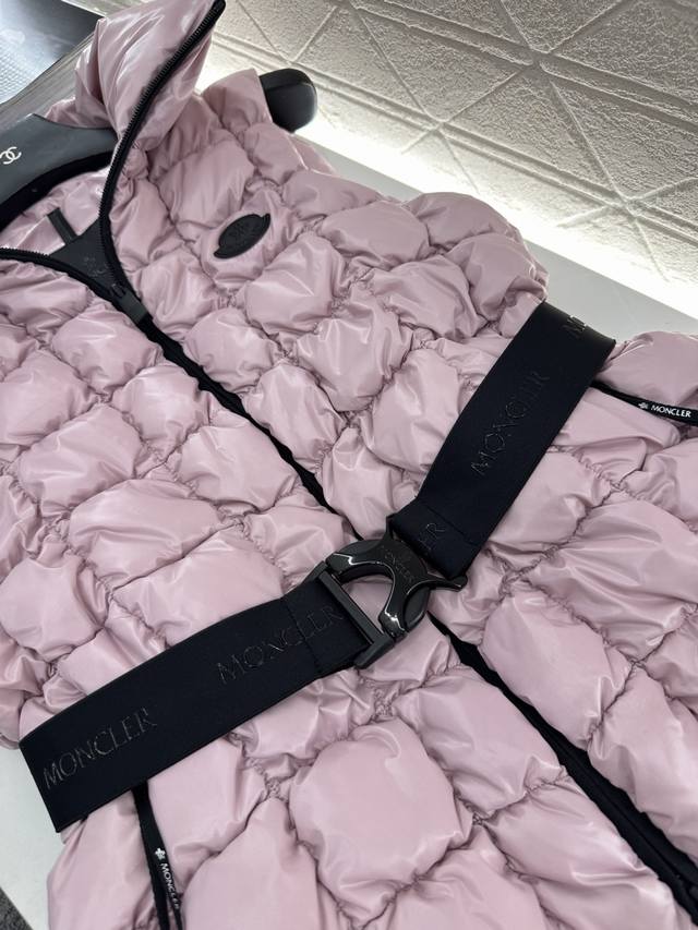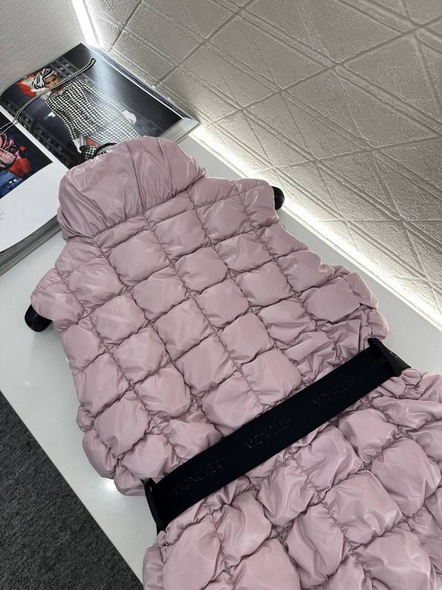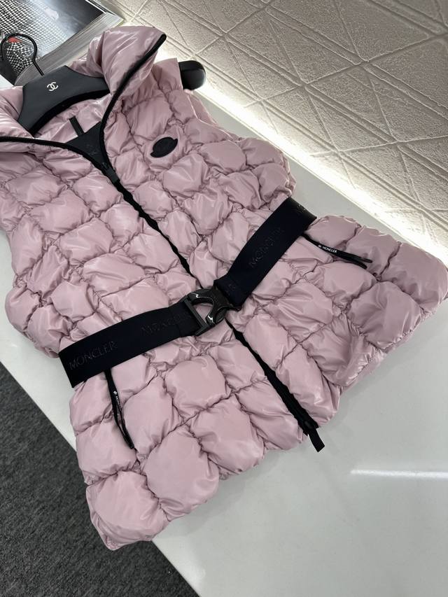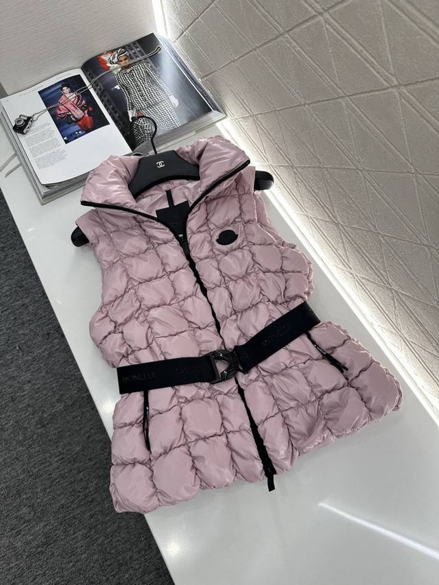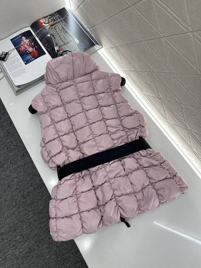 Moncle*2025 New Arrivals: Stand-Up Collar and Belt Down Vest. Custom Yb windproof and waterproof nylon material. Lined with white goose down. Lightweight and warm. Stand-up collar and lapel collar. Two-way fit. Warm without bulk. Enhanced style. Embossed checkered pattern. Offset-printed logo on chest for a sophisticated look. A waist-hugging, lettered waistband design. Unlike larger sizes, this one combines warmth and style, eliminating the bulk of traditional down jackets. A top choice for fall and winter layering. Custom fabrics and accessories. Check the version. Filling standard: National Standard 90% down. Filling material: White goose down, high-quality, two colors.