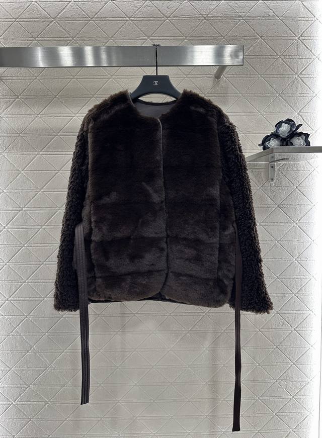 Teddy Plush Snap-Button Down Jacket. The front panel is adorned with soft and comfortable Teddy plush. The plush texture on the torso and sleeves creates a stylish and fashionable look. The snap buttons are emblazoned with logos, and the side sleeve badges showcase the brand's style. The silhouette adjusts to the body, creating a relaxed fit. The plush waistband accentuates your curves, creating a comfortable, sophisticated, and fashionable look. A top choice for fall and winter wear, both solo and layered. Filling: White goose down. Filling weight: National Standard 90. Customizable fabrics and accessories. Look for versions 1-3.