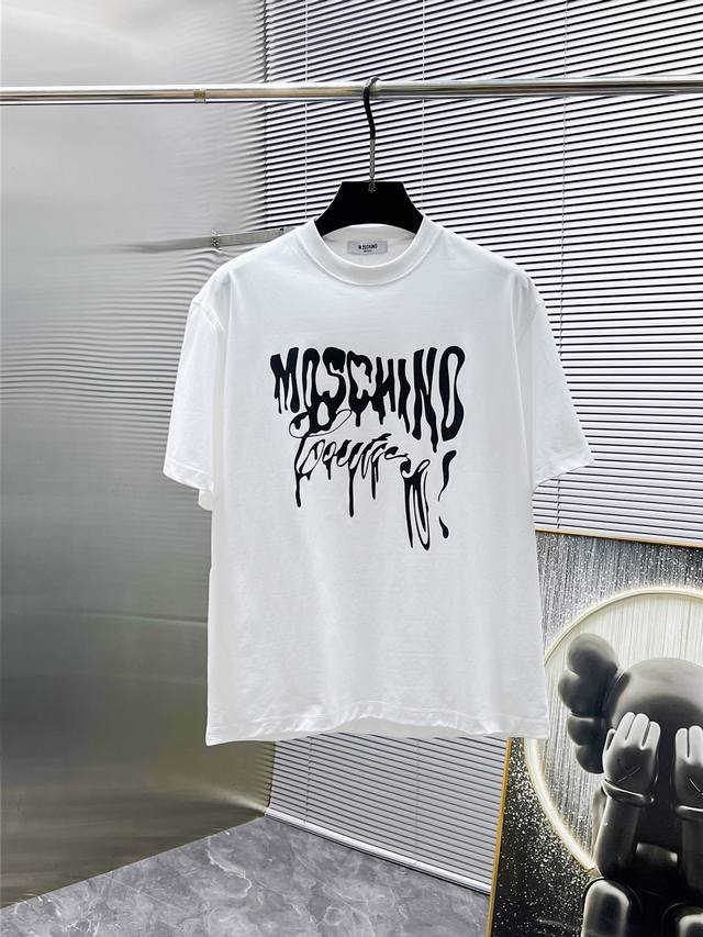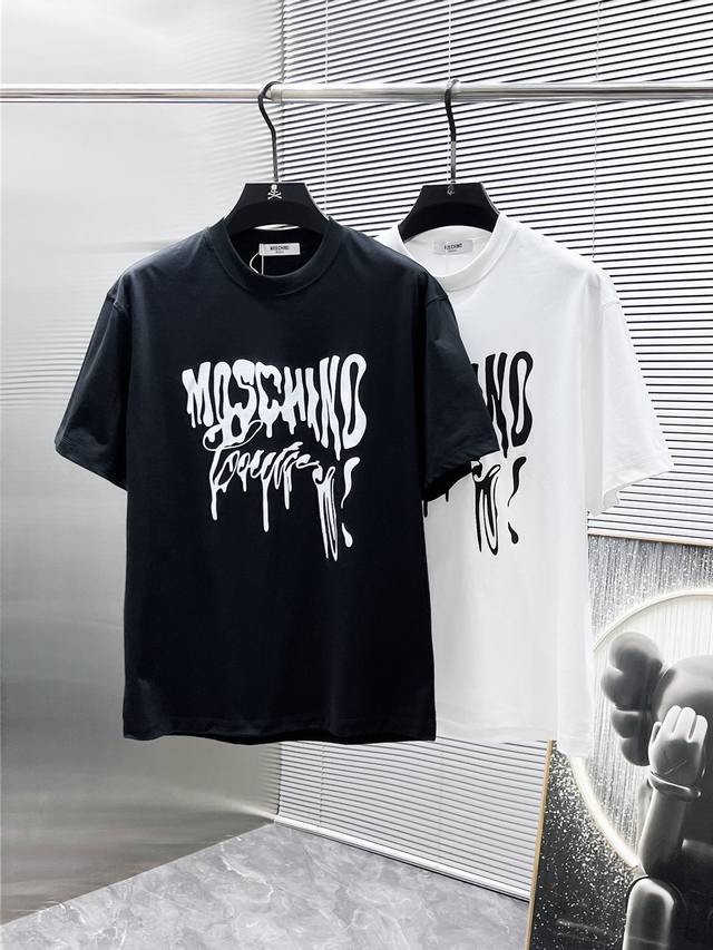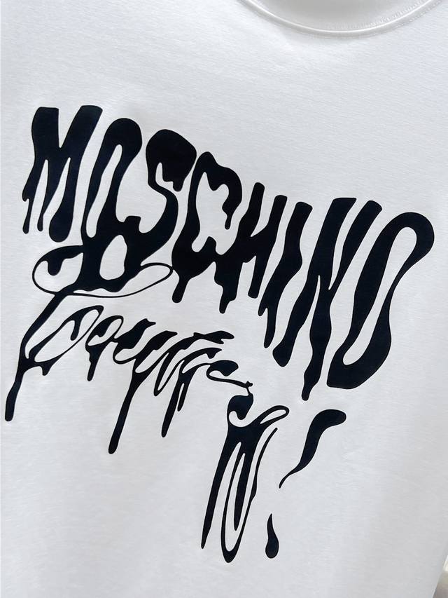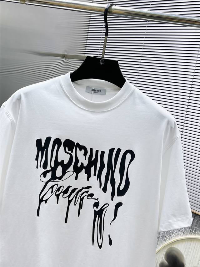 Moschino 2025 new round neck short-sleeved T-shirt, high-end version! Custom-made fabrics are breathable and comfortable, with impeccable details, brand element design concept, and high quality. Delicate and soft touch! Casual cut, great upper body shape! Size: S-3Xl