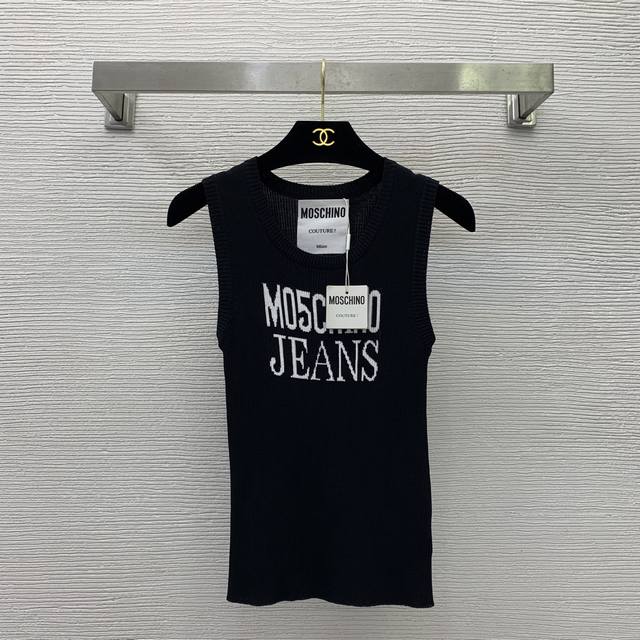 Moschin*O's new chest logo slim fit high stretch knit vest! Rose red, black, white, M size: chest 54, length 55. The fabric is elastic and the large size is for reference only.