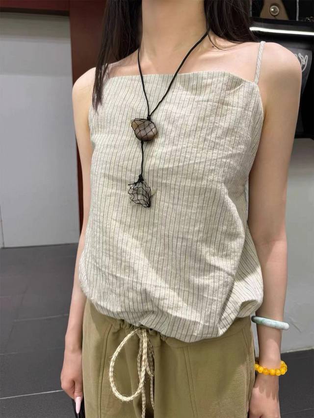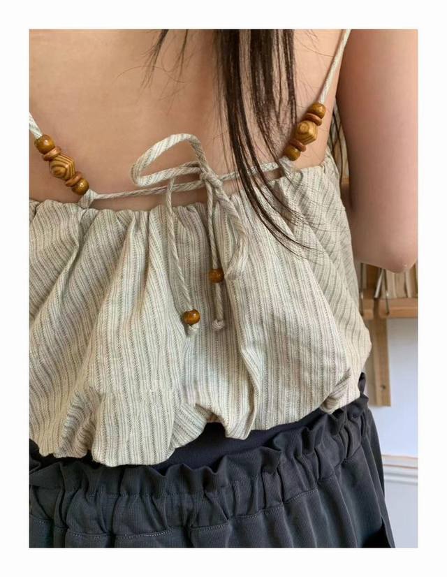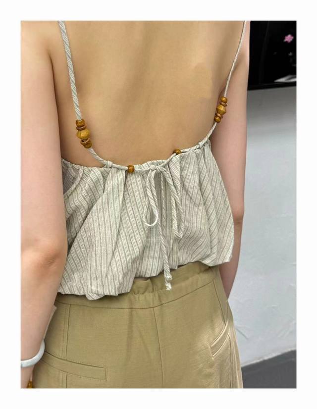 Ms 2025 Early Autumn Hemp Backless Vest, Brand Source 54% Hemp 44% Tencel Fabric, Backless Design, Wooden Bead Drawstring Adjustable. Sml
