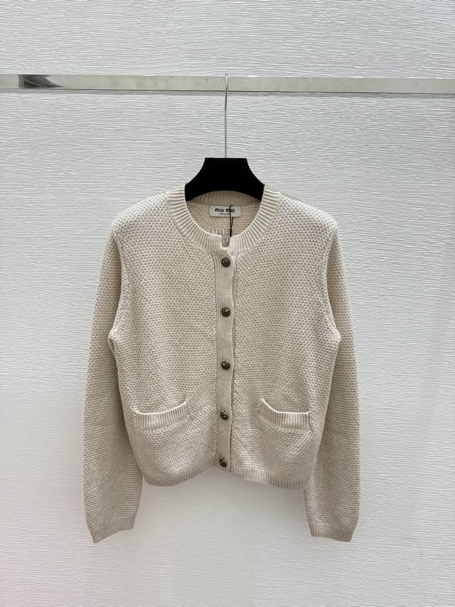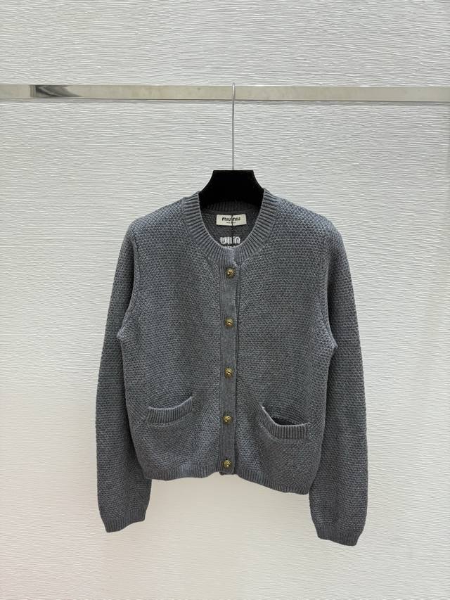 M's early autumn new solid color simple round neck knitted long sleeve cardigan