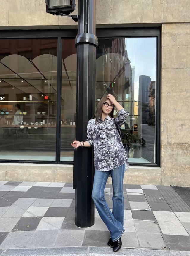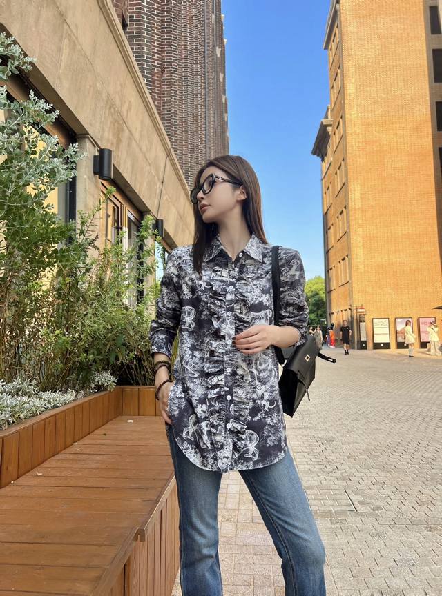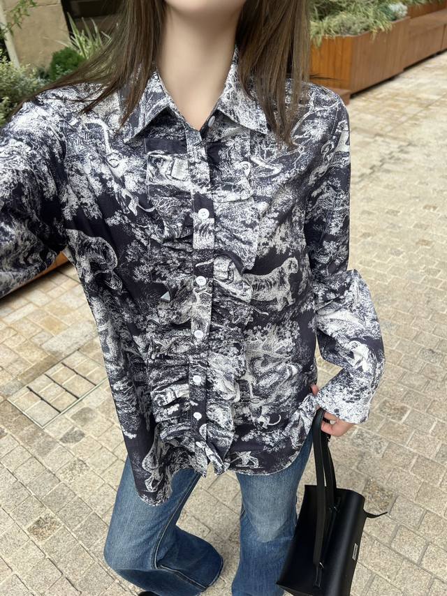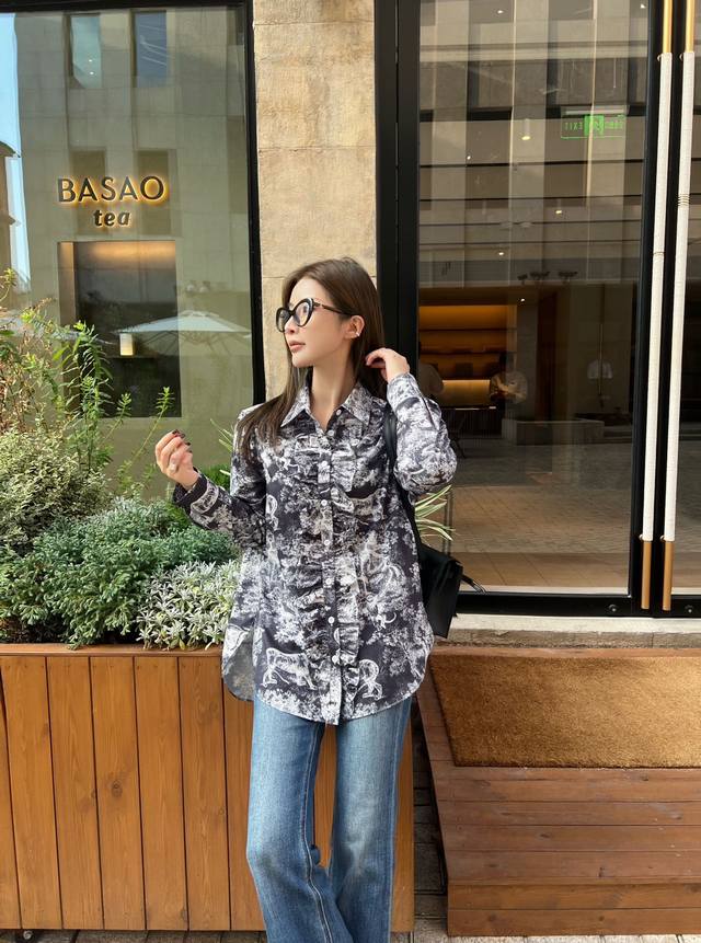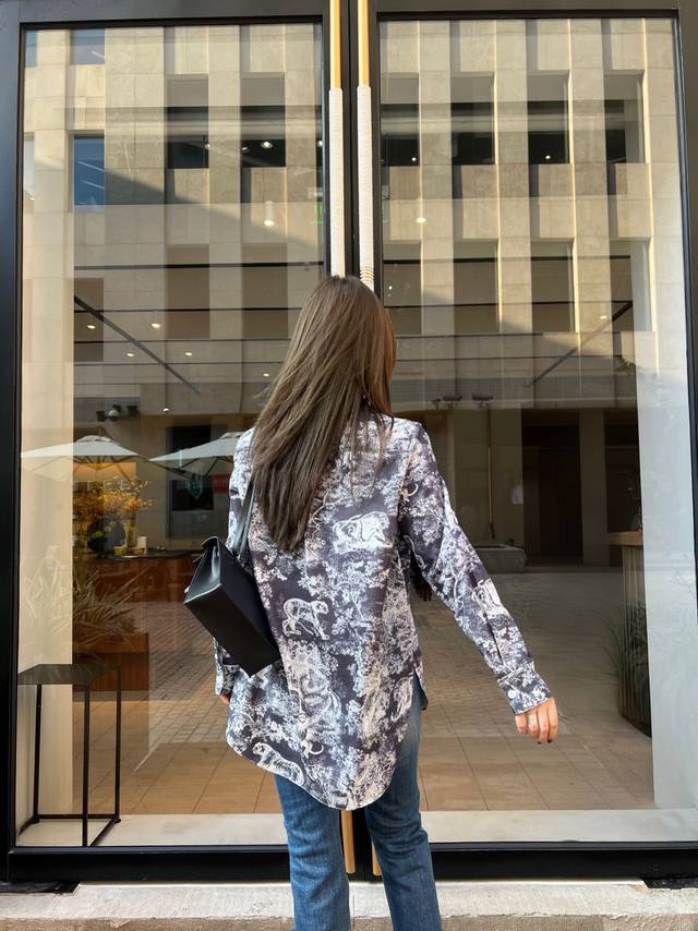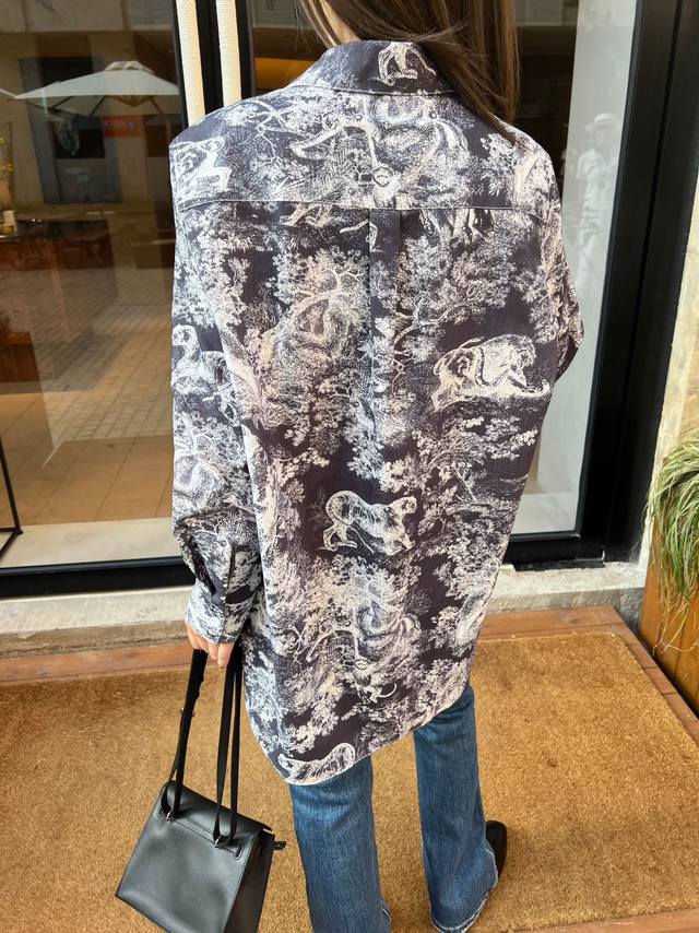 New 2025Dio* Autumn and Winter new animal print long-sleeved shirt, interpreting the classic animal jungle pattern of D. Low-key luxury and connotation, monochrome Sml