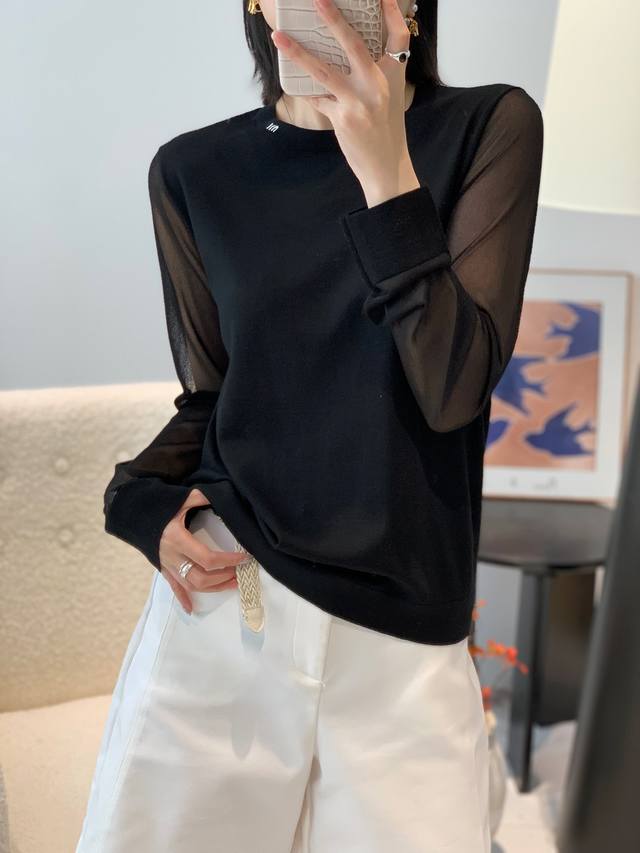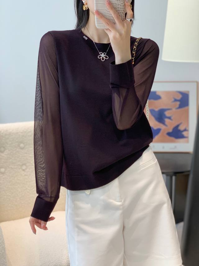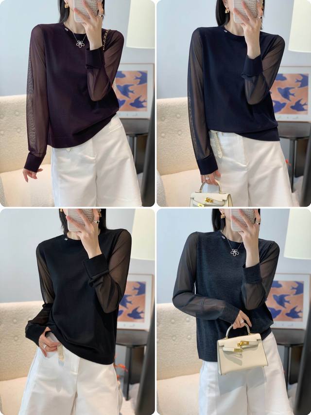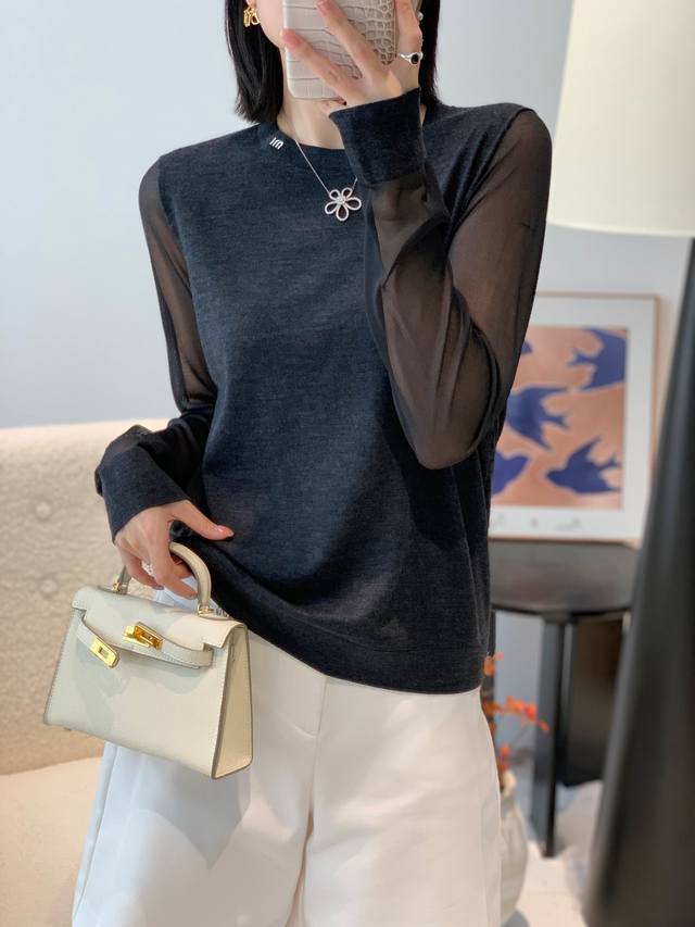 New 60s 100% superfine merino wool round neck silk sleeve bottoming shirt