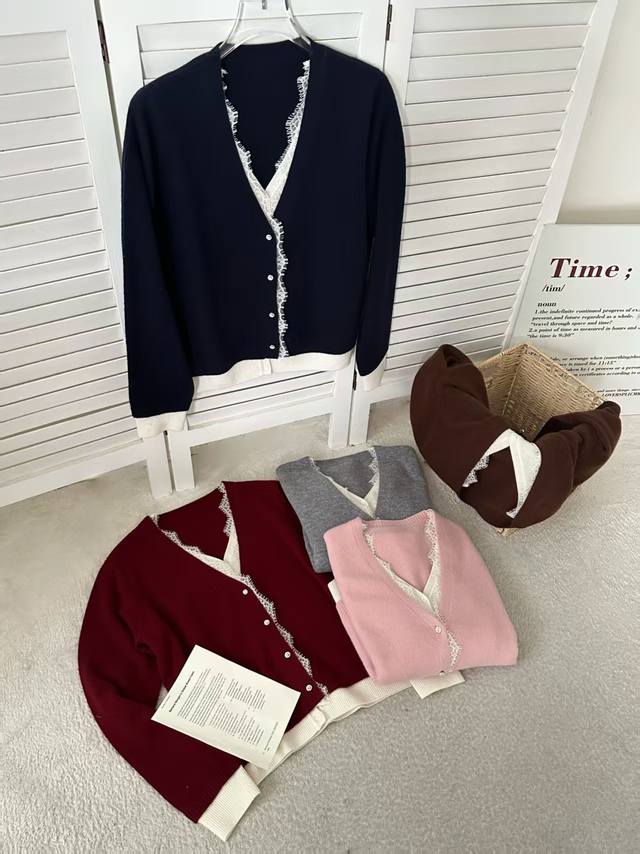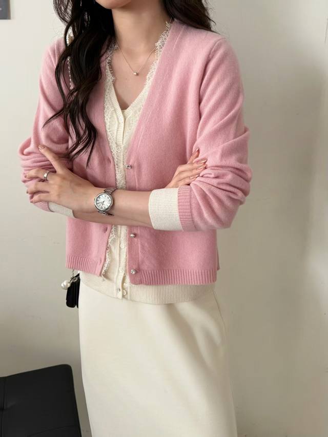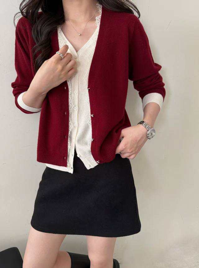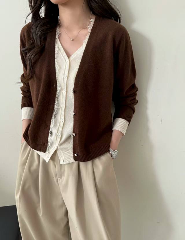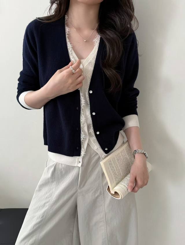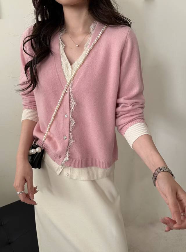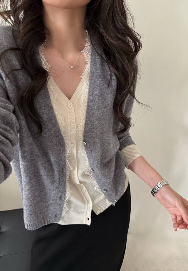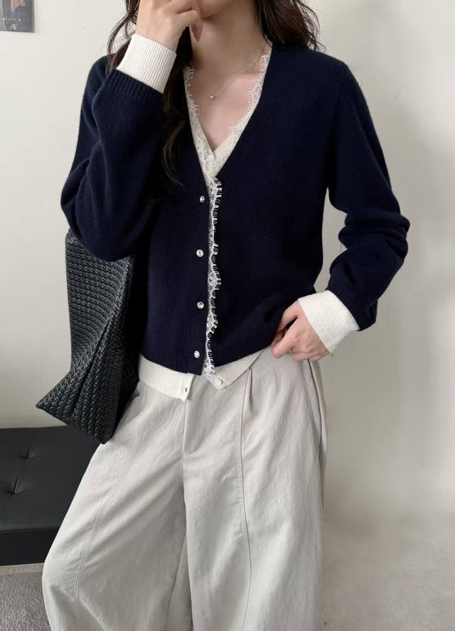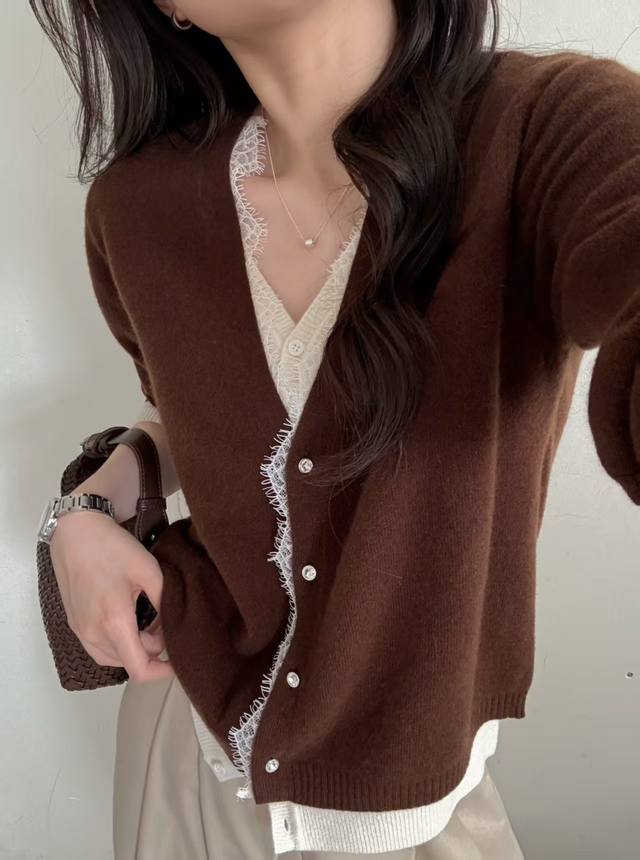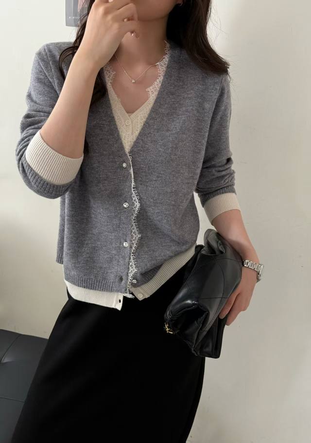 New all-wool fake two-piece lace cardigan long sleeves