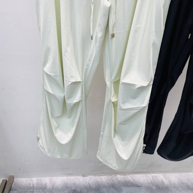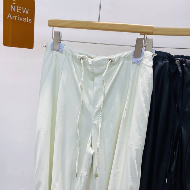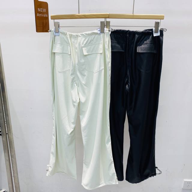 New American Retro Style Workwear Loose Drawstring Casual Straight Wide Leg Parachute Comfortable Protein Leather Pants Sml