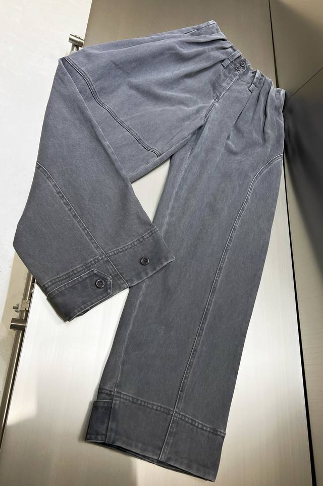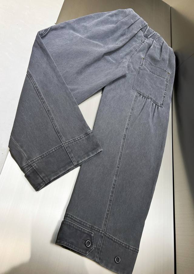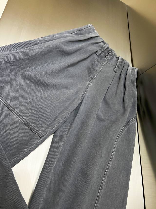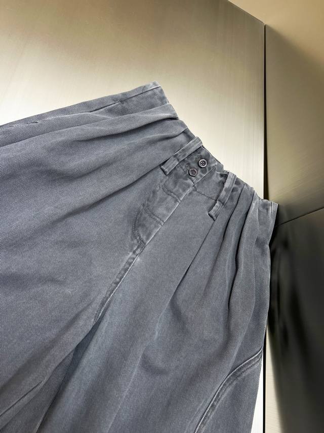 2025 Autumn/Winter New Washed Pleated Asymmetrical Patchwork Cargo Pants - Highly Recommended! The fabric has weight yet is comfortable and has a crisp feel. The sand-washed distressed process is very complex, with many wash adjustments. The bulk order is excellent, and the effect is fantastic. A custom-made cut with pleated waist, straight leg, wide-leg style, and asymmetrical patchwork design on the legs. Stylish and versatile. All accessories are custom-made with molds, and the details are impeccable.