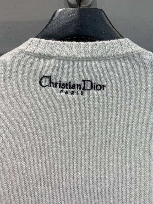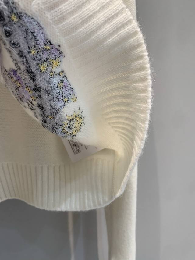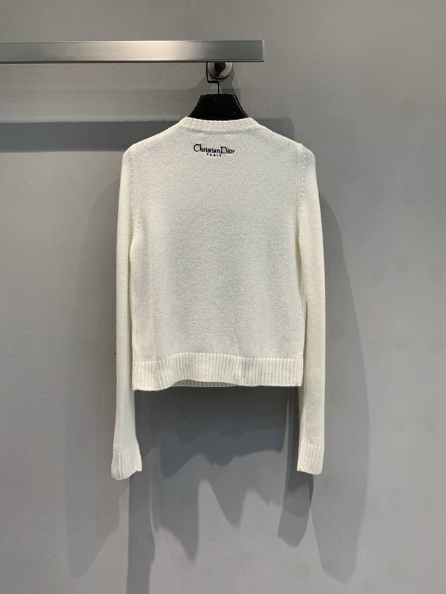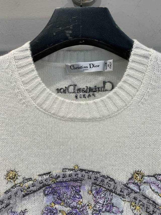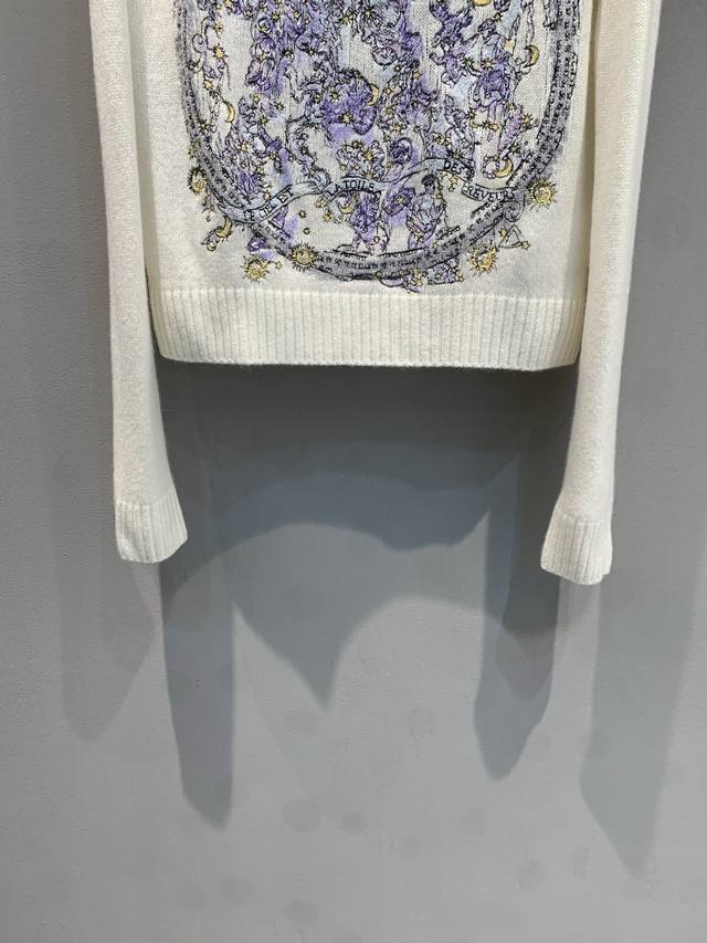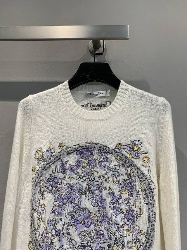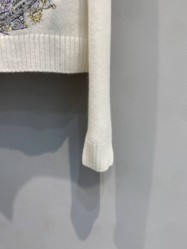 New Arrival! Cd 2025 Autumn/Winter New Compass Floral Embroidered Cashmere Sweater. Made of 100% cashmere, soft and delicate, with superb warmth. The floral and star compass embroidery on the chest is inspired by the night sky and mythology, with exquisite details and top-notch craftsmanship. Regular fit with ribbed trim, comfortable and elegant, super versatile for autumn and winter wear, looks great with jeans or a tulle skirt. Sizes: 36, 38, 40.