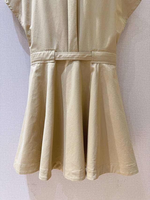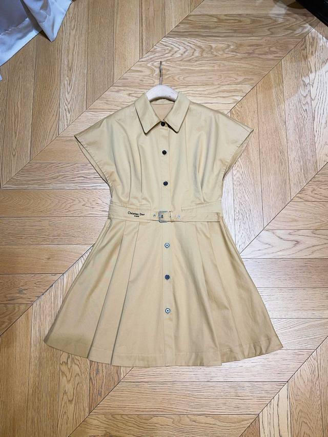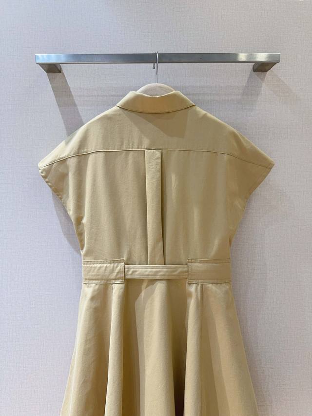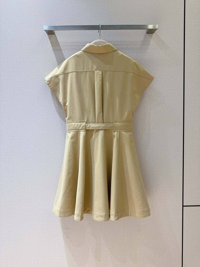 New Arrival from Ddd: Solid Color Collared Short Dress with Cut-Out Sleeves! This classic collared, high-waisted dress features a flattering high waist, crafted from premium cotton, with pockets on both sides. It boasts a flared skirt hem, adorned with exclusive metal buttons and a small bee embellishment at the waist, creating an elegant and sophisticated look. Sizes: Smlxl, K250507