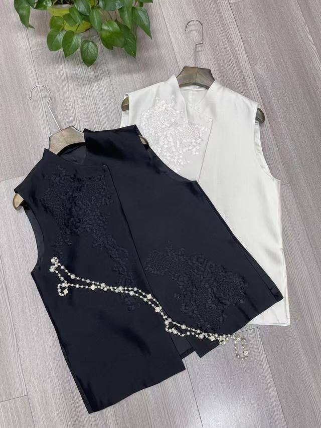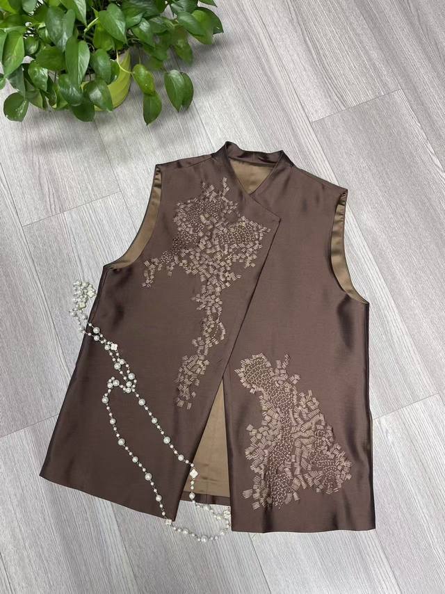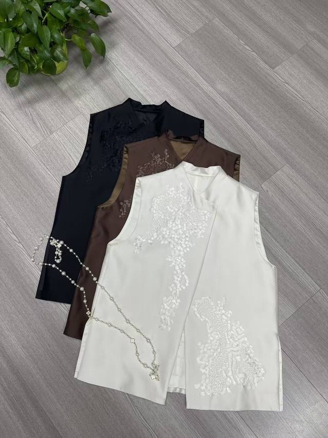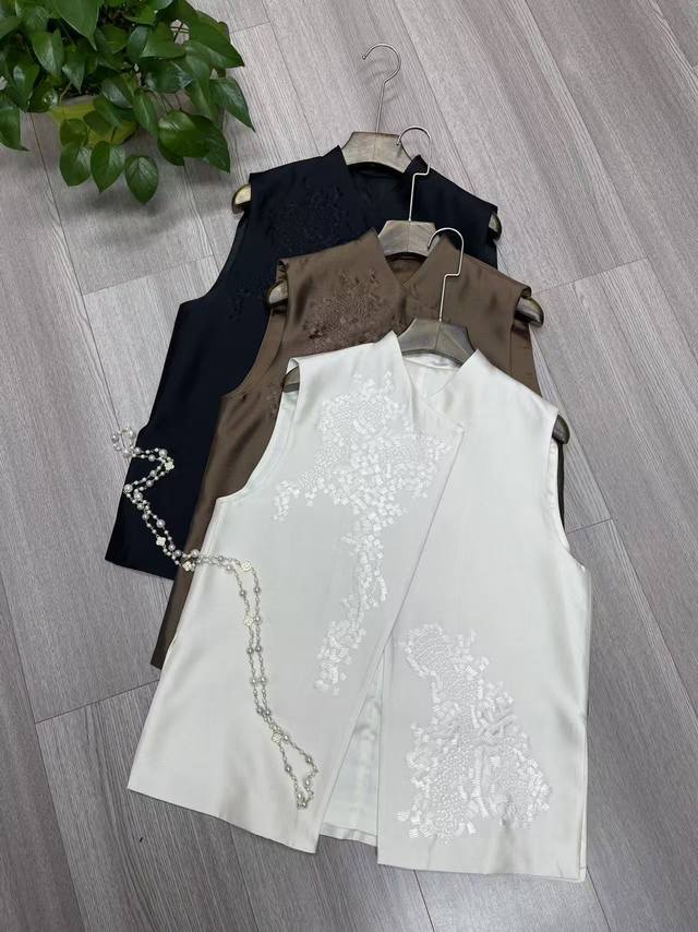 High quality positioning 10,000 needle embroidery High-grade temperament versatile silk wool vest