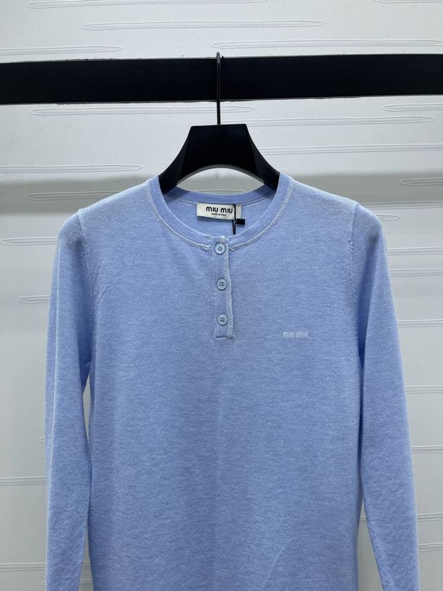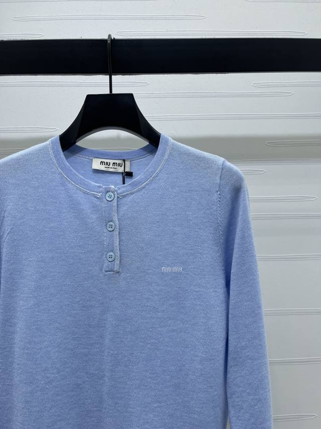 New Arrival: High-end Original Miu Mi* 2025 Autumn/Winter Collection! Button-down Half-Open Knit Long Sleeve! Crafted from custom wool yarn, it boasts a premium feel, is incredibly soft and comfortable, features a round neck and knit long sleeves, and is finished with vertical ribbed knit trim. The half-open button detail subtly reveals the skin, creating a slimming effect on the shoulders and neck. Exquisite details and a refined round button logo add a touch of sophistication and style, perfect for a preppy look! Available in 1 color! Sizes SM-L3! High-quality bulk order A706B400C DDD