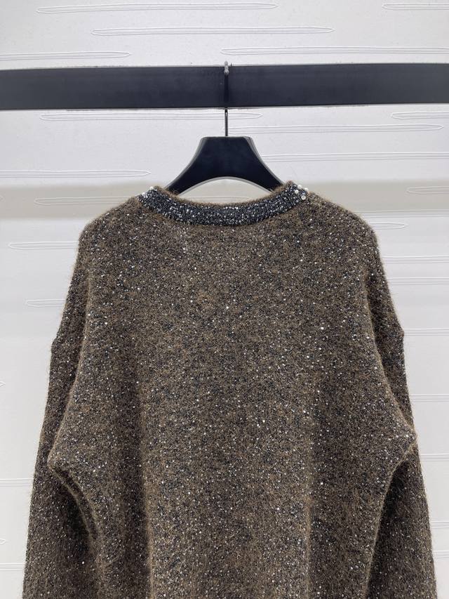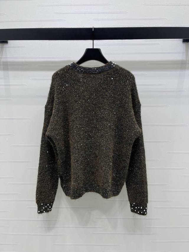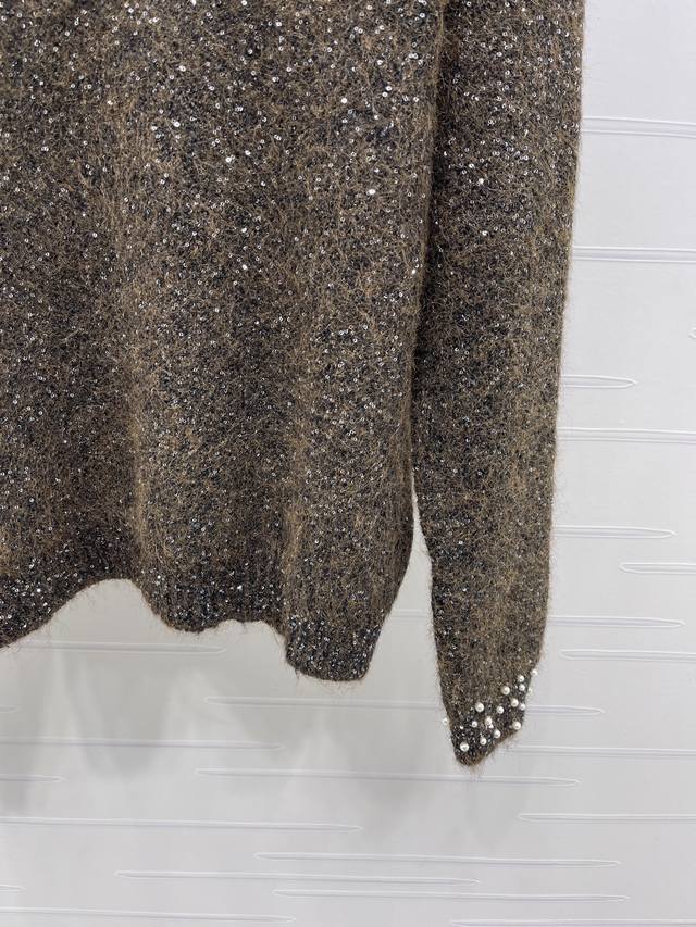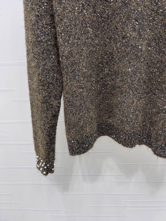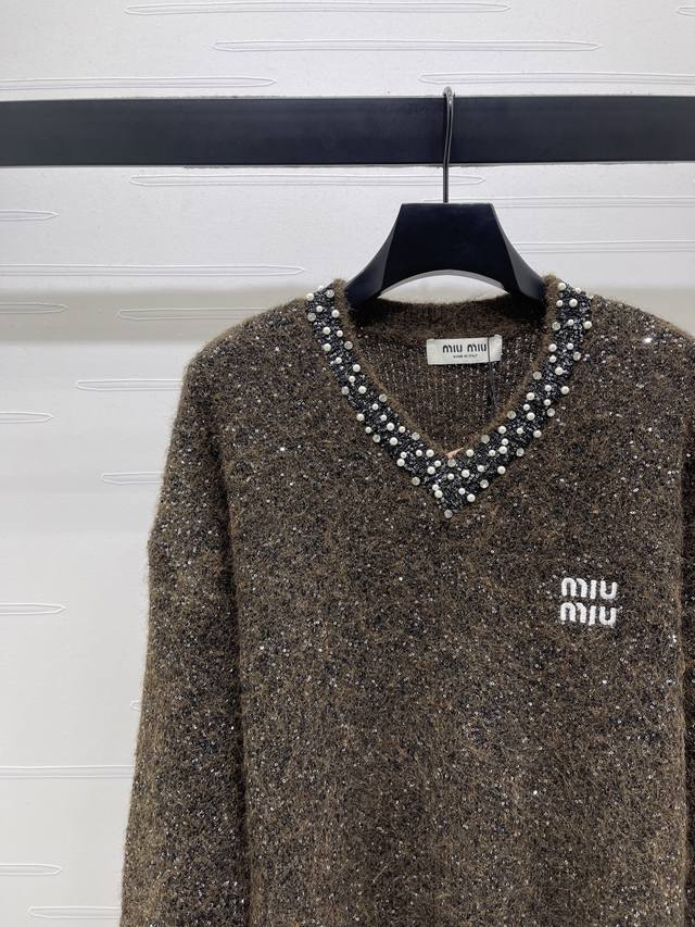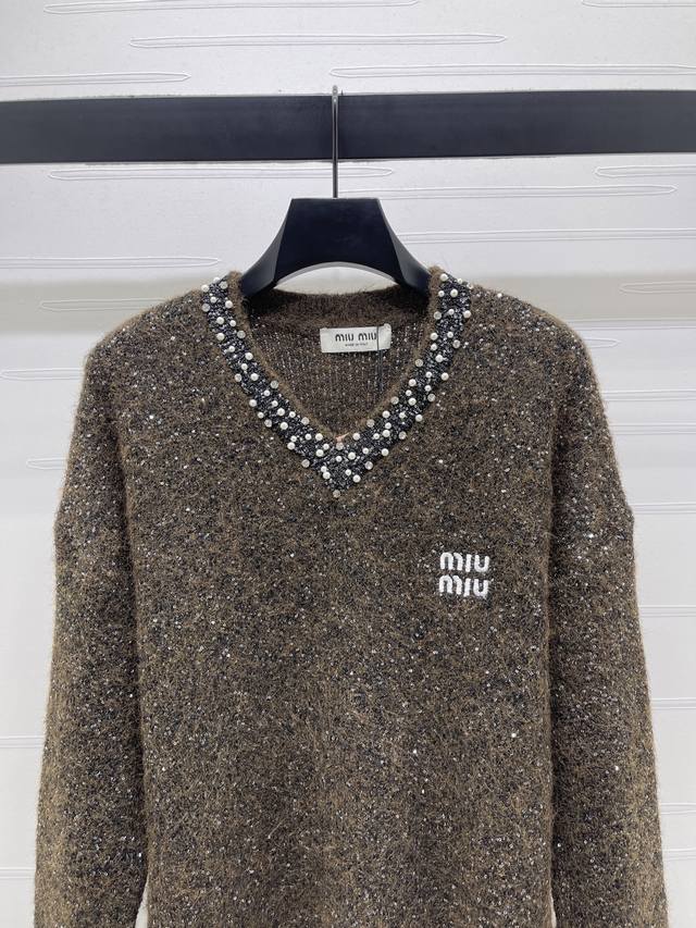 New Arrival! High-end original Miu Mi* 2025 Autumn/Winter Newest Collection! Heavy-duty V-neck beaded knit long-sleeved sweater! Made from a custom wool blend knit material , this soft and comfortable V-neck pullover sweater features a generous cut and is adorned with fine, sparkling sequins. The beading at the neckline and cuffs echoes the brand's style, making it a must-have for a warm autumn/winter look! Available in 2 colors! Sizes SM-L3! High-quality bulk order A706B400C DDD