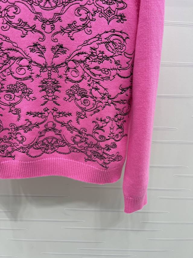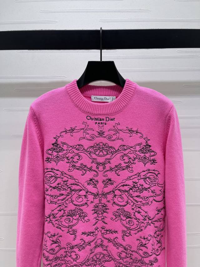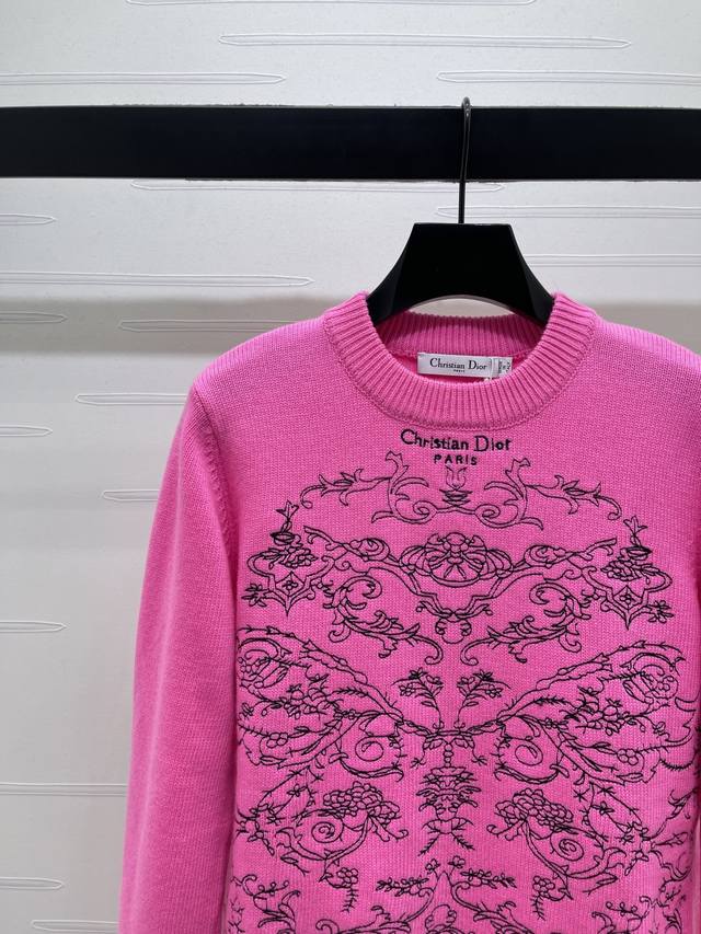 New Arrival! High-end Original Quality Dio* 2025 Autumn/Winter Collection! Embroidered Knit Pullover Sweater, woven with custom wool yarn, delicate texture, soft and comfortable. Crew neck knit sweater cut, ribbed edges and three-dimensional tailoring add a touch of sophistication. The entire sweater features a delicate knit texture, paired with highly elastic fabric, flattering and slimming. The chest is decorated with plant vine elements and architectural frames, reminiscent of a courtyard, showcasing the brand's style. A sophisticated and elegant look, suitable for everyday wear and commuting! 2 colors! Sizes SM-L3! High-quality bulk goods A706B430C DDD