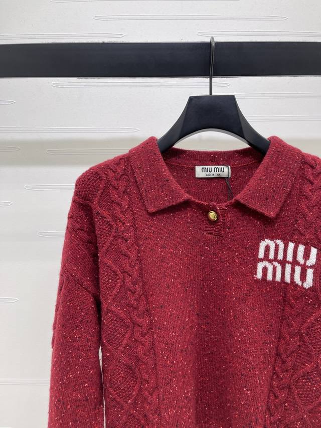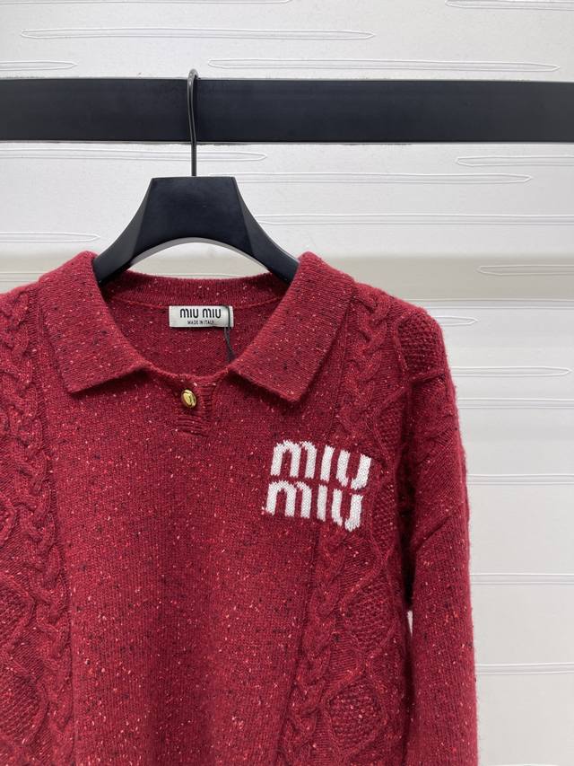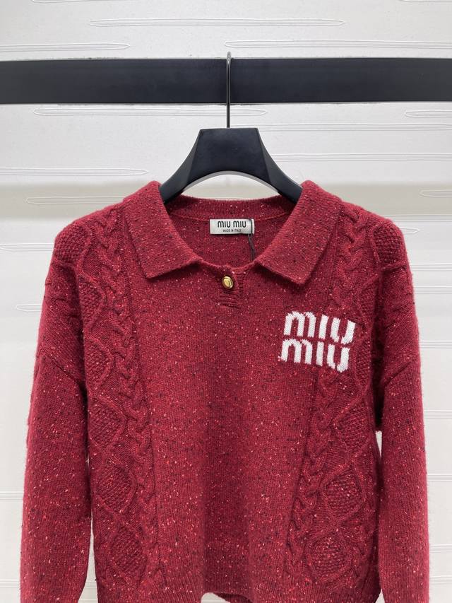 New Arrival! High-end original quality Miu Mi*2025 Autumn/Winter latest collection! Diamond-patterned collar knit sweater! Custom imported wool knit material, comfortable and soft. The vertical cable knit texture combined with the diamond-patterned crochet design adds a sense of style and layering. The iconic letter logo decoration on the chest highlights the brand's style. The overall colorful dot pattern adds vibrancy and a fashionable touch, breaking the dull atmosphere of autumn and winter. Stylish and sophisticated! 2 colors! Sizes SM-L3! High-quality bulk goods A706B410C DDD