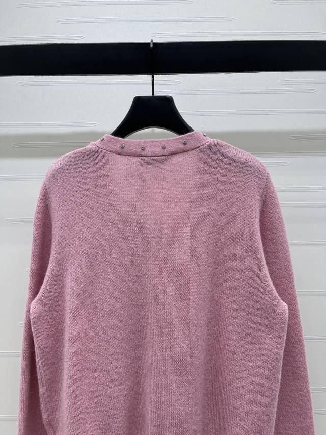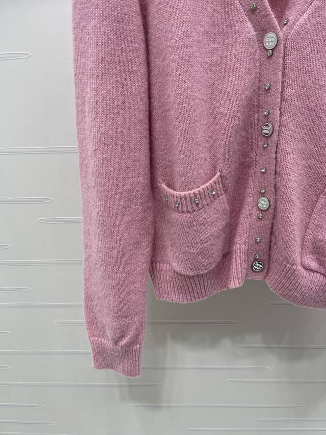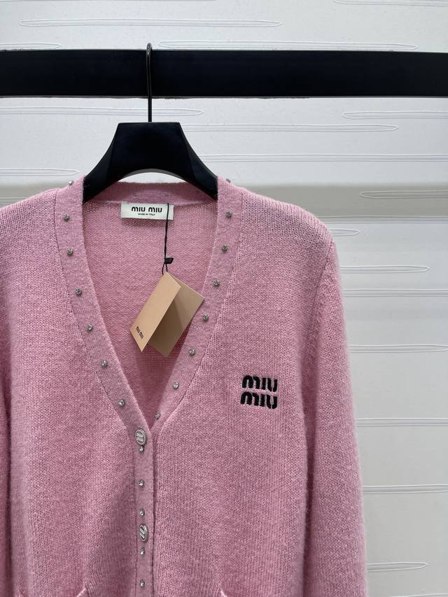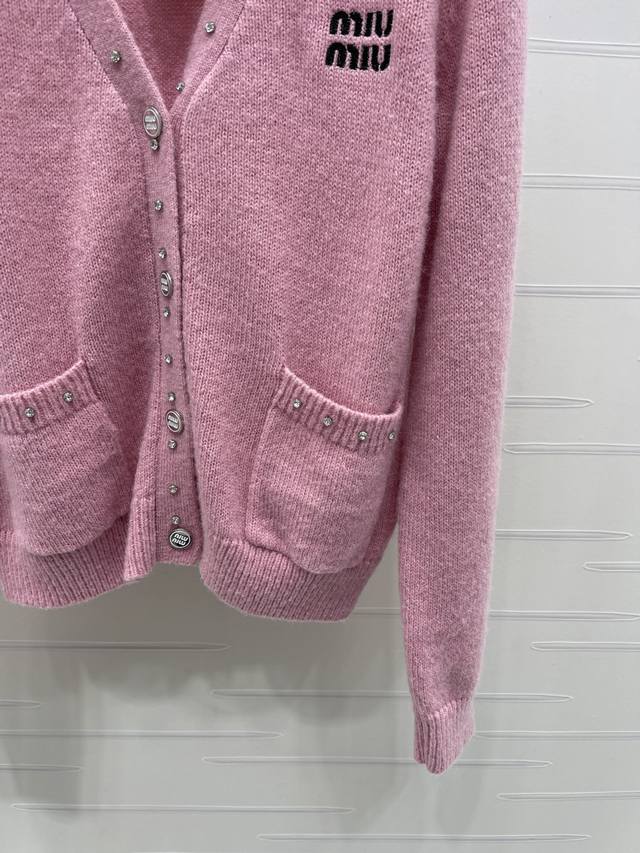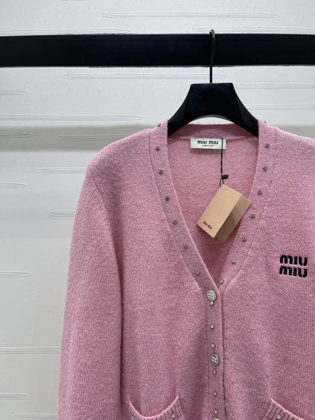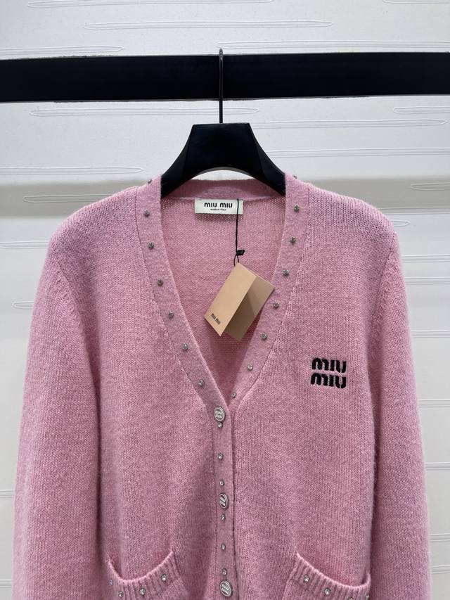 New Arrival! High-end quality original Miu Mi*2026 Early Spring Collection! Double-pocket rhinestone-embellished V-neck knit cardigan! Crafted from custom wool yarn, soft and skin-friendly with a premium feel. The V-neck long-sleeved cardigan features a stylish and casual cut. The letter logo decoration on the chest showcases the brand's style. Ribbed edges add a touch of vibrancy. An essential for autumn and winter outfits. A guide to relaxed and fashionable preppy style! Available in 2 colors! Sizes SM-L3! High-quality bulk order A706B410C DDD