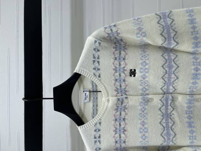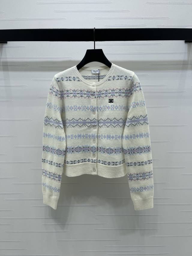 New Arrival! High-quality original Celin 2025 Autumn/Winter collection! Crew neck Arc de Triomphe crochet cardigan! Made with custom wool yarn, this high-quality, comfortable, and soft crew neck long-sleeved cardigan features a striking geometric Arc de Triomphe design, contrasting stripes, crochet details, and a single-sided embroidered micro-label design that highlights the brand's style. The regular fit is flattering for all body types and ages. A simple and versatile autumn/winter everyday style! Available in 3 colors! Sizes SM-L3! High-quality bulk order.