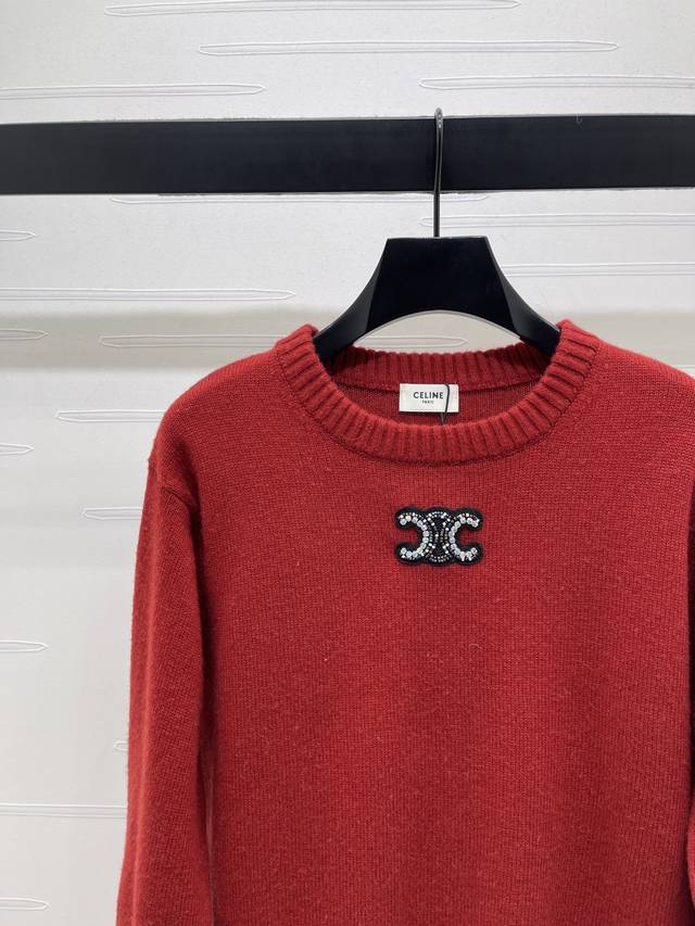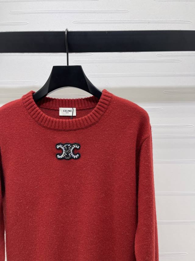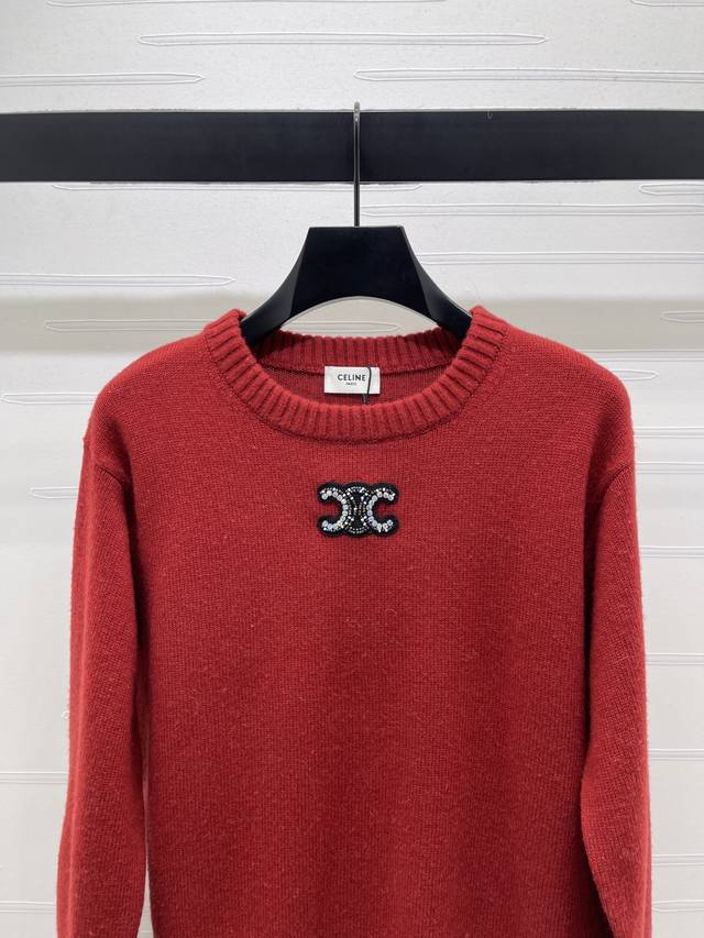 New Arrival! High-Quality Original Celin 2025 Autumn/Winter Collection! Heavy-Duty Beaded Knit Pullover Sweater! Custom imported wool knit material, soft and comfortable. The entire sweater features a bound edge with elastic ribbed trim for a snug fit and added dimension. Heavy-duty beading on the chest outlines the Arc de Triomphe pattern, showcasing the brand's style. The round neck pullover design adds a touch of Korean gentleness and artistic flair, perfect for layering in autumn and winter! 3 Colors! Sizes SM-L3! High-Quality Bulk Item A706B370C DDD