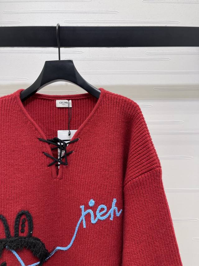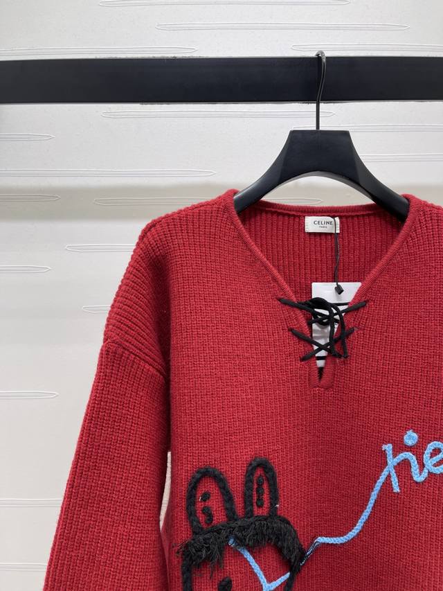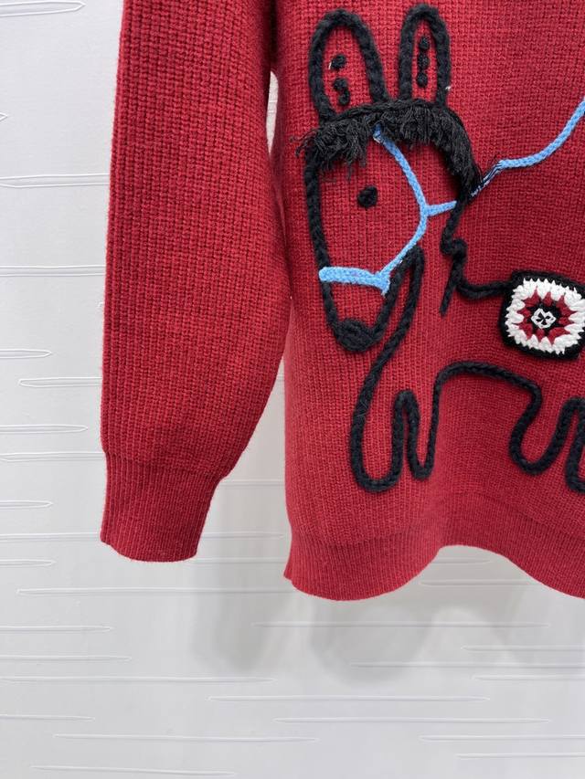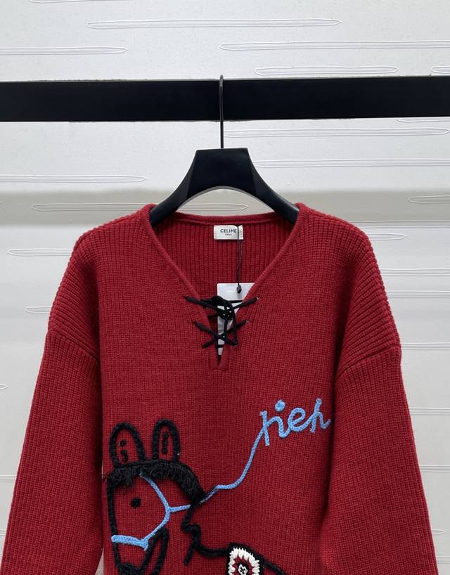 New Arrival! High-Quality Original Celin 2026 Early Spring Collection! New Year's Pony V-Neck Sweater! A limited-edition New Year's collection, made with custom wool yarn for comfortable wear and a luxurious feel. The high-neck pullover sweater features vertical ribbed trim throughout, and a centrally located plush, colorful pony pattern for a youthful and sweet look. Available in 2 colors! Sizes SM-L3! High-quality bulk order A706B320C DDD