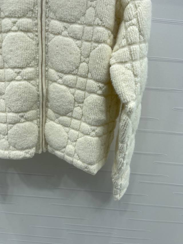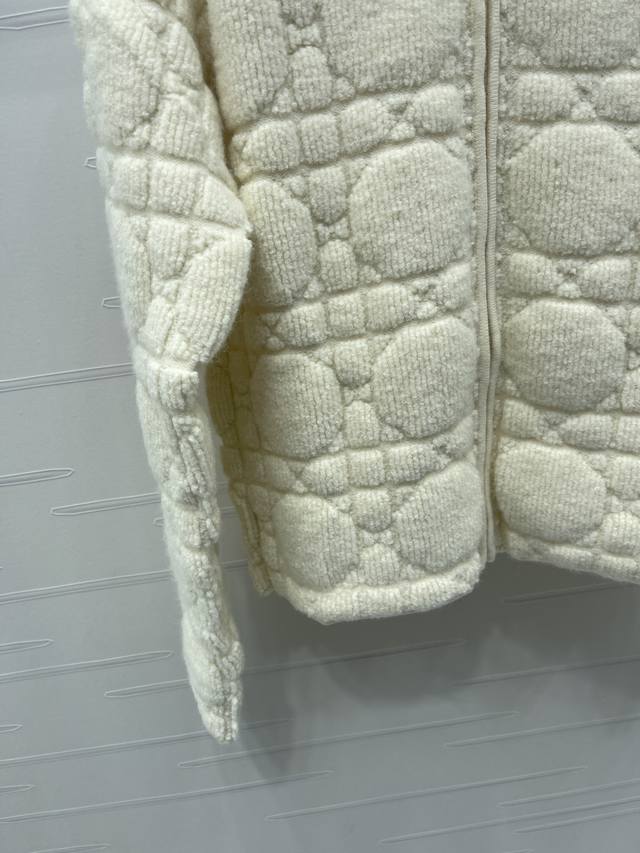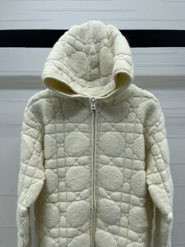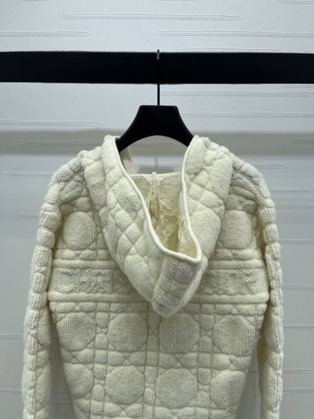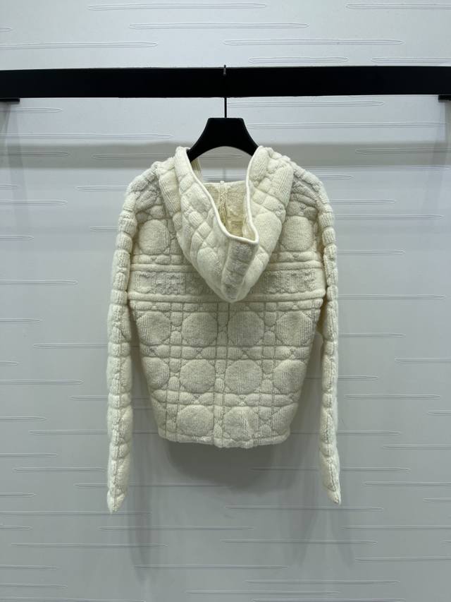 New Arrival! High-Quality Original Dio* 2025 Autumn/Winter Collection! Cannage Pattern Hooded Zip-Up Long-Sleeve Cardigan! Custom-made wool knit material with superior texture and dense pile. The hooded cardigan features a ready-to-wear design with knitted ribbed edges for a sophisticated and structured look. The three-dimensional plush texture and cannage pattern decoration on the back, along with letter jacquard, create a unique and luxurious style, adding a touch of style to this classic and versatile piece. Available in refreshing and gentle blue and white, easily capturing the pure and alluring charm of autumn and winter! 1 color! Sizes SM-L3! High-quality bulk order.