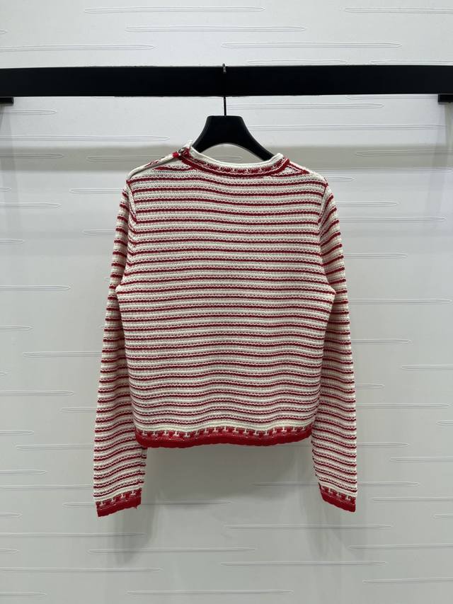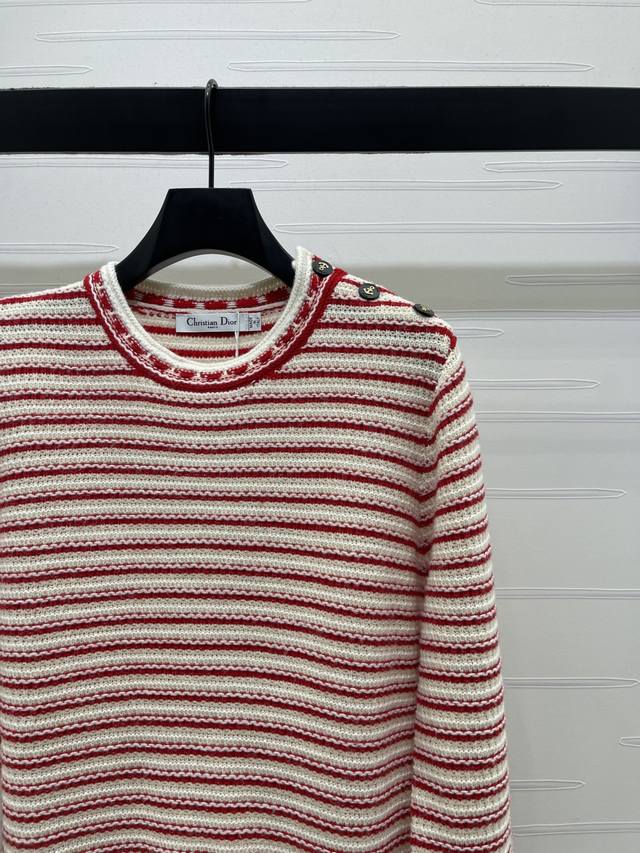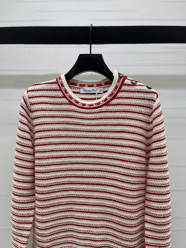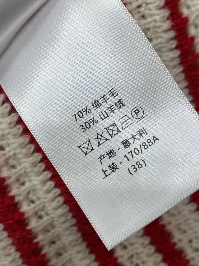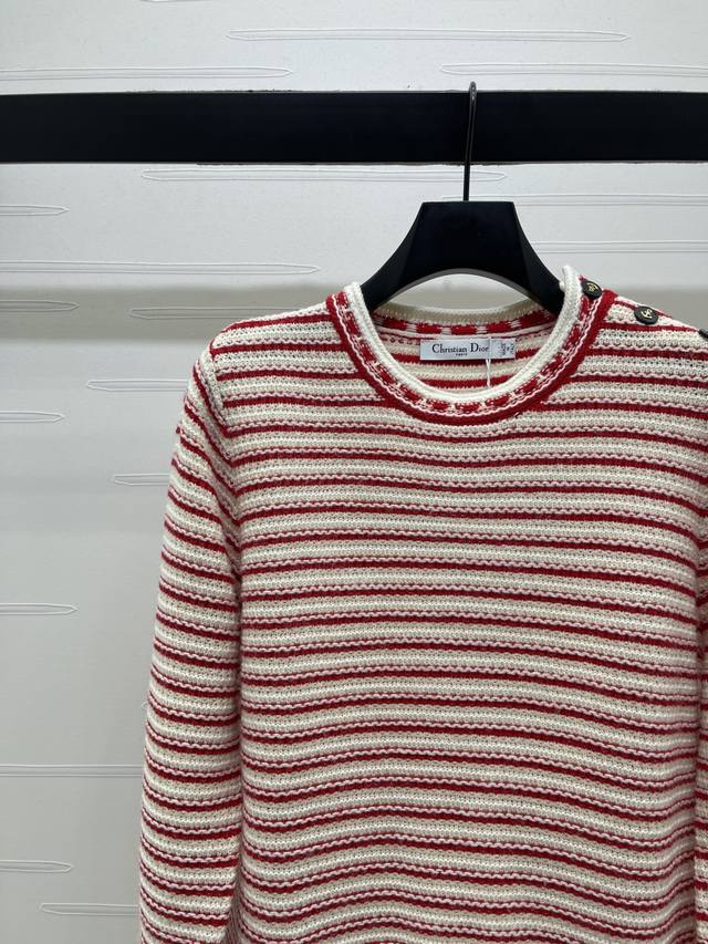 New Arrival! High-Quality Original Dio* 2025 Autumn/Winter Collection! Crew Neck Striped Knit Sweater! Made of custom wool knit material, soft and delicate, comfortable to the touch. The crew neck and long sleeves feature striped details extending from the collar to the front, creating a contrasting effect. The overall design features two-tone horizontal stripes, with wide striped trim at the hem and cuffs for added visual appeal and an artistic feel. The stretchy fabric hugs the body, offering a simple yet sophisticated look. 1 color! Sizes SM-L3! High-quality bulk order A706B360C DDD