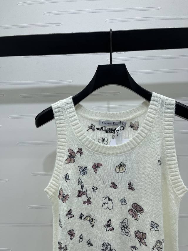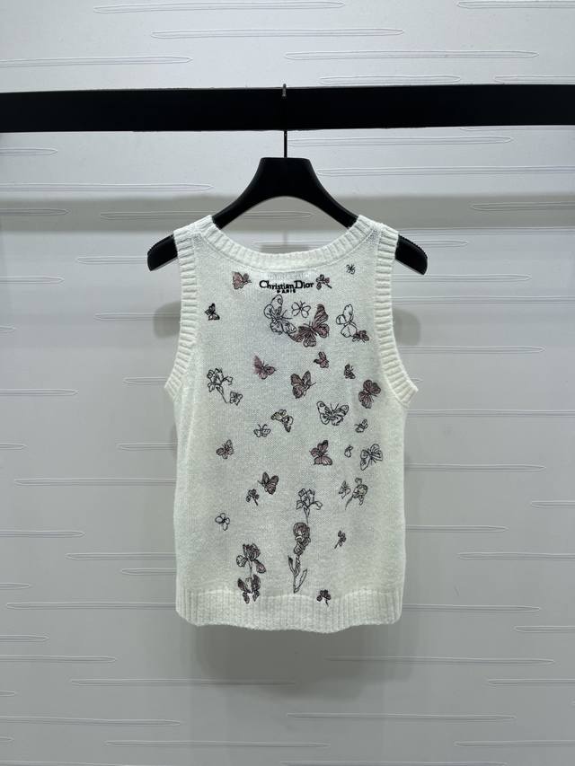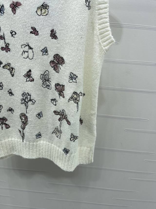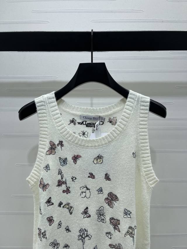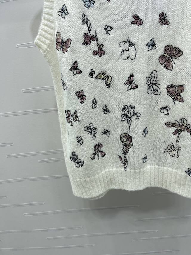 New Arrival! High-Quality Original Dio* 2025 Autumn/Winter Collection! Heavy-duty Butterfly Embroidered Knit Vest! Made with custom wool blend yarn, soft, comfortable, lightweight, and skin-friendly. The sheer fabric is eye-catching and creates a light, sexy look. Multiple butterfly patterns are meticulously embroidered throughout, showcasing the brand's premium feel. Regular fit with ribbed edges adds a touch of design sophistication. Relaxed and stylish, perfect for layering. Suitable for commuting, dates, vacations, and many other occasions! 1 color! Sizes SM-L3! High-quality bulk order A706B390C DDD