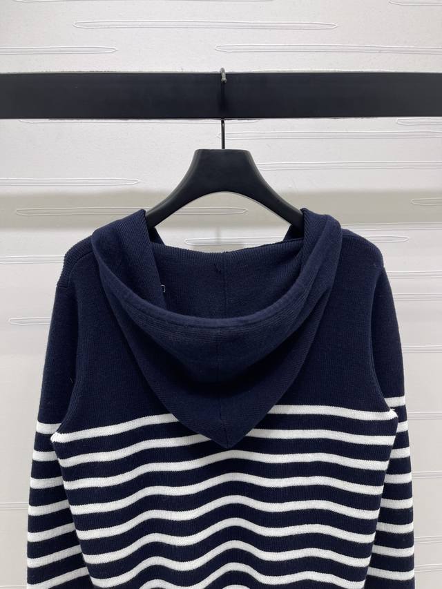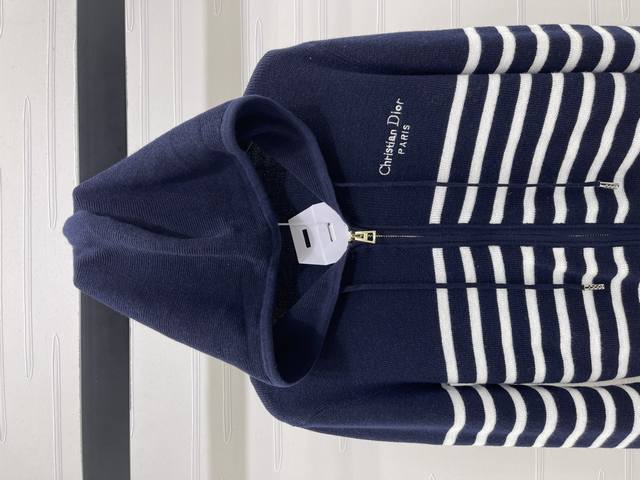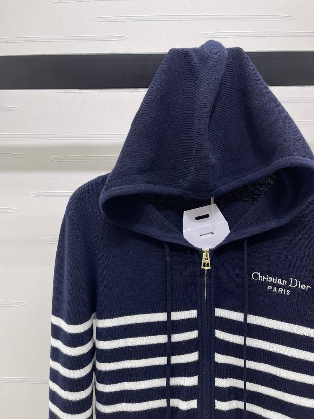 New Arrival! High-Quality Original Dio* 2025 Autumn/Winter Collection! Hooded Striped Zipper Knit Cardigan! Made with custom wool blend yarn, the fabric is delicate, soft, comfortable, and luxurious. Two-tone stripes throughout, with a subtle embroidered logo on one chest, showcasing the brand's personality. Stylish and sophisticated! Available in 2 colors! Sizes SM-L3! High-quality bulk order.