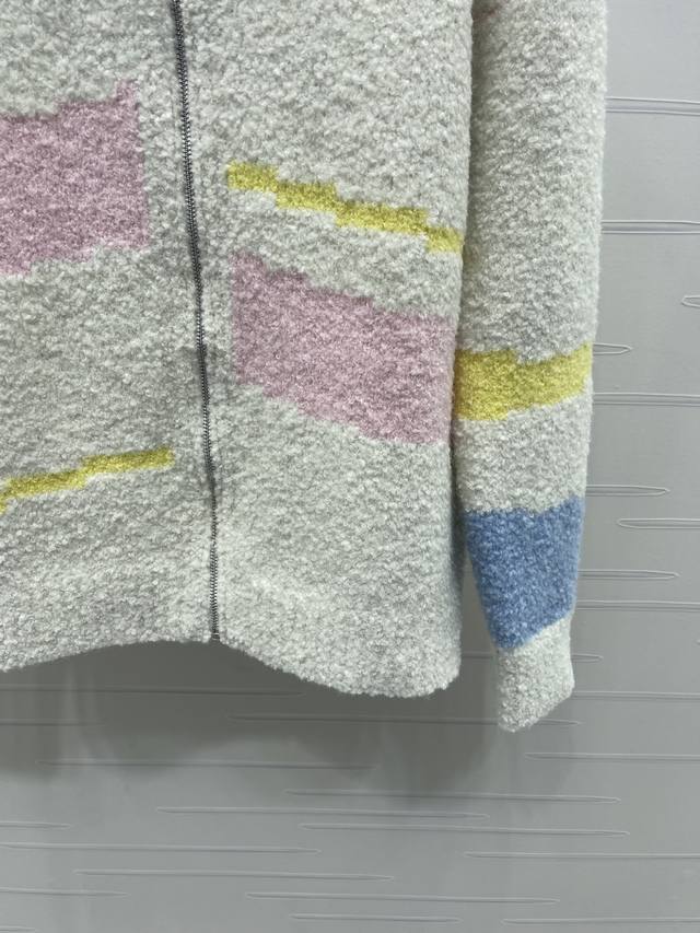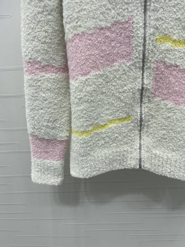 New Arrival! High-Quality Original Dio* 2025 Autumn/Winter Collection! Stand Collar Zipper Knit Cardigan! Custom wool blend knit material with a fine knit density, soft and comfortable against the skin. The stand collar knit cardigan features pink and yellow stripes on the front, giving it a fresh and lively look. The zipper design makes it easy to put on and take off. The loose fit is very forgiving, easily creating a relaxed and casual style! 1 color! Sizes SM-L3! High-quality bulk order A706B480C DDD