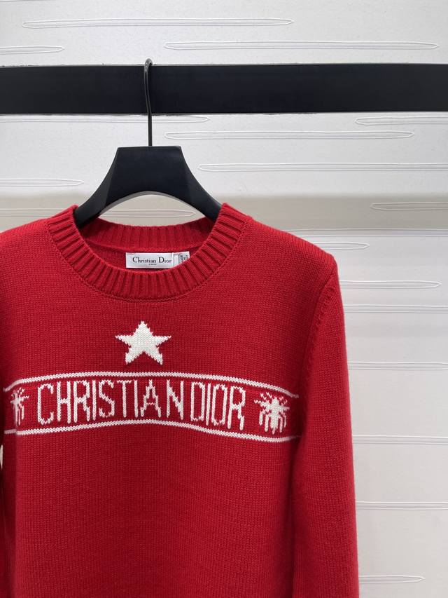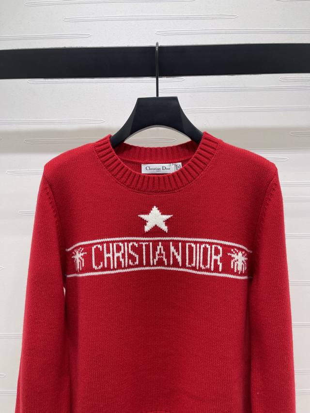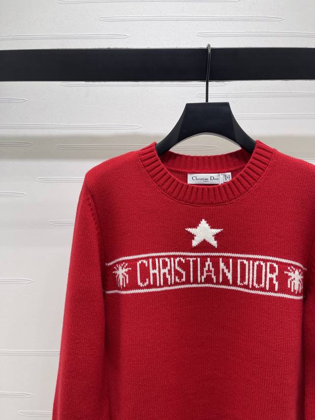 New Arrival! High-Quality Original Dio* 2025 Autumn/Winter Collection! Star Jacquard Pullover Knit Sweater! Custom wool blend knit material, high-quality, delicate and soft texture. Round neck knit sweater with horizontal bar letter logo jacquard and micro-logo five-pointed star pattern embellishment on the chest, classic, fashionable and elegant! Regular fit, flattering and versatile! Highly recommended must-have item! Perfect workmanship and quality can be seen in the details! 1 color! Sizes SM-L3! High-quality bulk goods A706B400C DDD