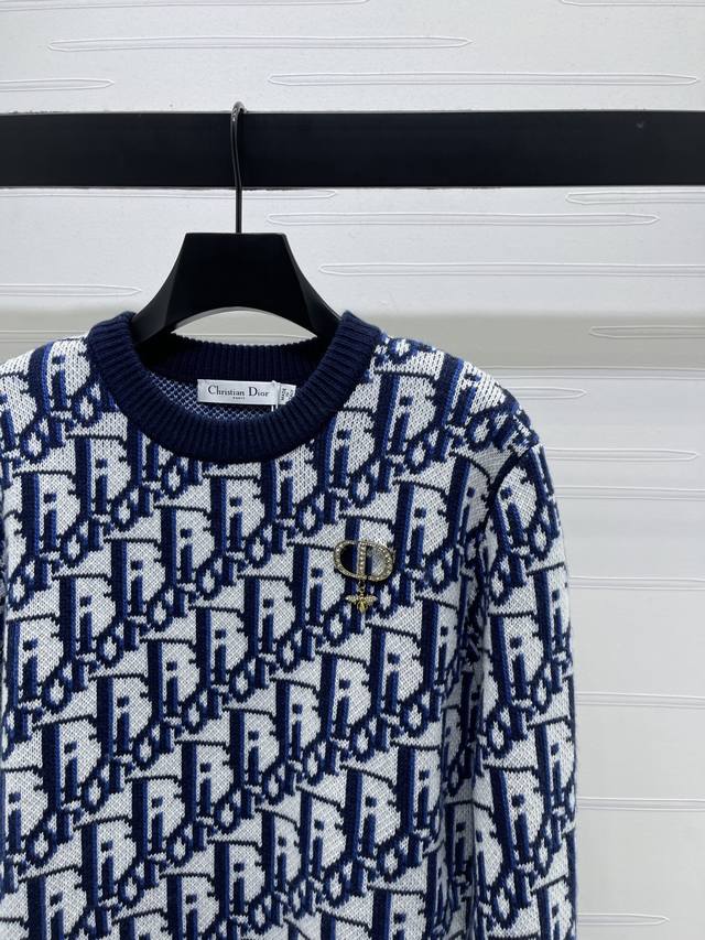 New Arrival! High-Quality Original Dio* 2025 Autumn/Winter Newest Collection! Letter Jacquard Pullover Long-Sleeve Sweater! Custom wool yarn, high-quality breathable round neck long-sleeve sweater. The entire sweater features a fine crochet texture to outline the letter jacquard pattern. A single brooch with rhinestones complements the design, highlighting the sophistication of the outfit. The neckline and hem are finished with elastic ribbed trim to maintain a unified look. The overall style is sophisticated and casual, highlighting a light luxury and fashionable temperament. The slim fit is flattering and suitable for retro and fashionable goddess looks! 1 color! Sizes SM-L3! High-quality bulk goods A706B390C DDD