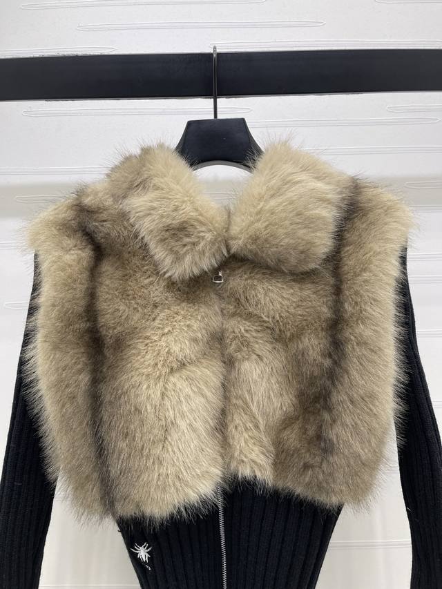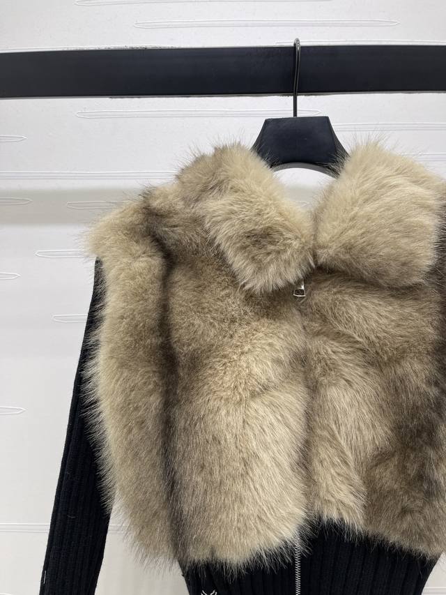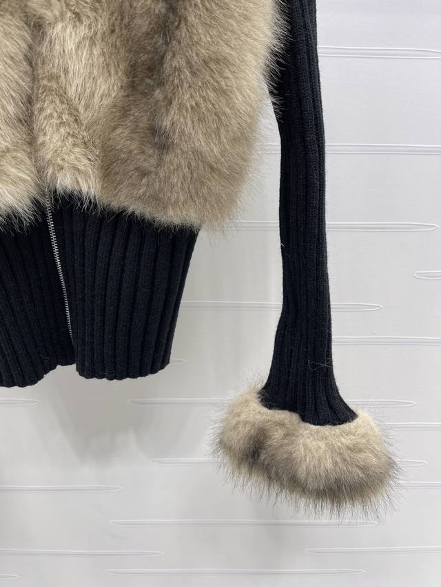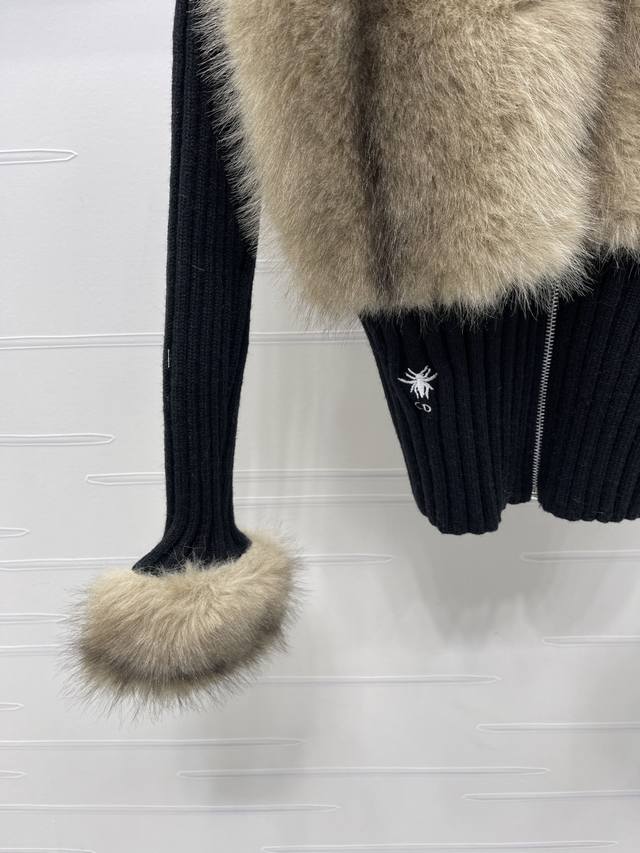 New Arrival! High-Quality Original Dio* 2026 Early Spring Collection! Eco-Friendly Silver Fox Fur Zipper Knit Cardigan! Custom-made wool blend material with superior texture, dense knit, thick, delicate, soft and smooth. The entire body is adorned with silver fox fur in contrasting colors, exuding a sophisticated and fashionable vibe. The vertical ribbed texture at the hem echoes the sleeves. The classic bee embroidery on the hem showcases the brand's high-end style. The slim fit accentuates the waistline! 2 colors! Sizes SM-L3! High-quality bulk order A706B380C DDD