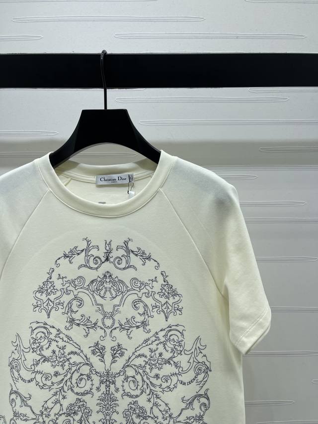 New Arrival! High-Quality Original Dio* 2026 Early Spring Collection! Exquisite Secret Garden Floral T-Shirt, custom-made 100% cotton, high-quality texture, soft and comfortable. Regular T-shirt cut, luxurious and high-end piece, classic and versatile style, elegant and youthful. Looks great with tulle skirts or jeans! 1 color! Sizes SM-L3! High-quality bulk order A706B260C DDD
