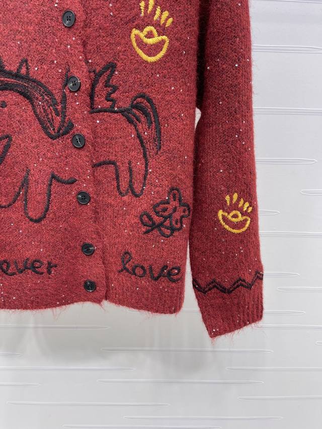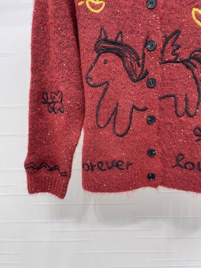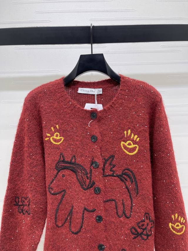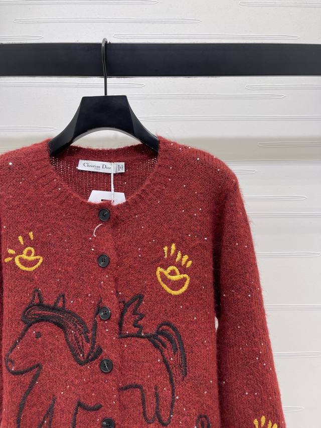 New Arrival! High-Quality Original Dio* 2026 Early Spring Collection! Limited Edition Year of the Horse Color-Blocked Embroidered Crew Neck Knit Cardigan! Custom-made wool knit material, skin-friendly, soft, dense and delicate. Crew neck long-sleeved sweater with a generous cut. The front placket features eye-catching embroidered pony and gold ingot patterns. The regular fit is flattering and flattering, making it slimming and stylish. Perfect for autumn and winter, wear alone or layered! 2 colors! Sizes SM-L3! High-quality bulk goods A706B390C DDD