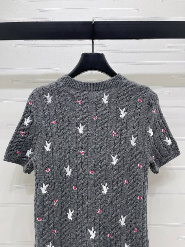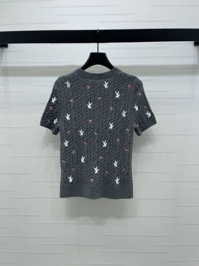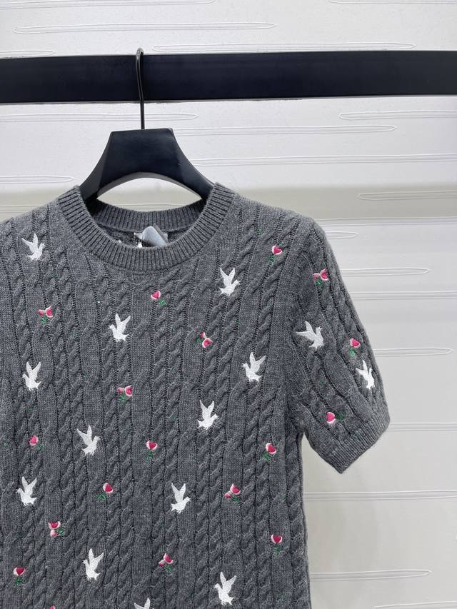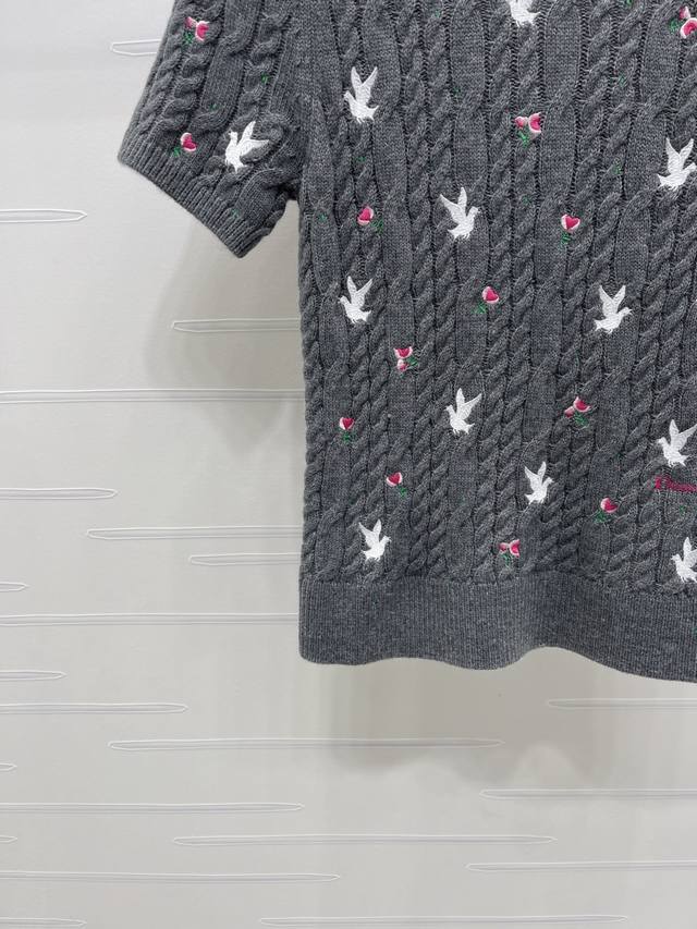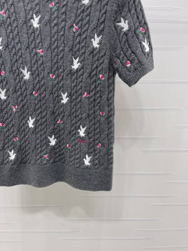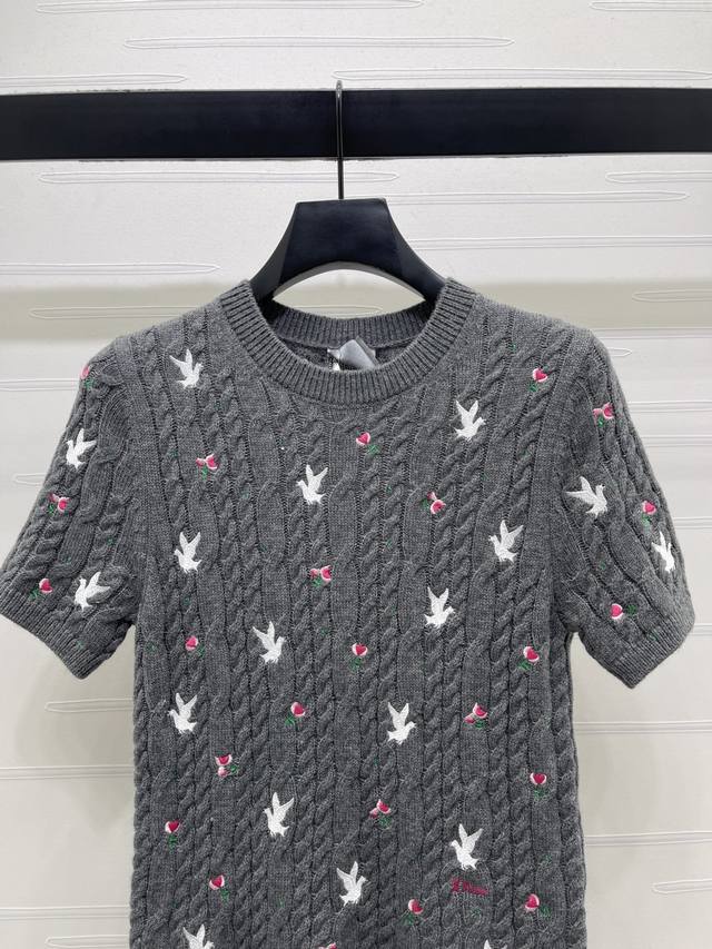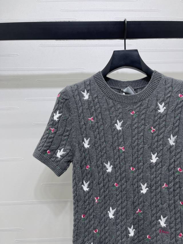 New Arrival! High-Quality Original Dio* 2026 Early Spring Collection! Round Neck Rose Floral Knit Short-Sleeve Top! Custom Yb cashmere knit material, high-quality texture, comfortable and soft. The cream white round neck knit short-sleeve top is so girly! The cable knit texture creates a gentle feel, and the scattered cherry embroidery is lively and playful. The understated brand logo hides exquisite details. Wear it alone for a sweet French style, or layer it with a coat to unlock a sense of layering. It incorporates romance into every detail of everyday wear. Regular fit, a simple and versatile style for autumn and winter, creating a chic look! 3 colors! SM-L3! High-quality bulk goods A706B310C DDD