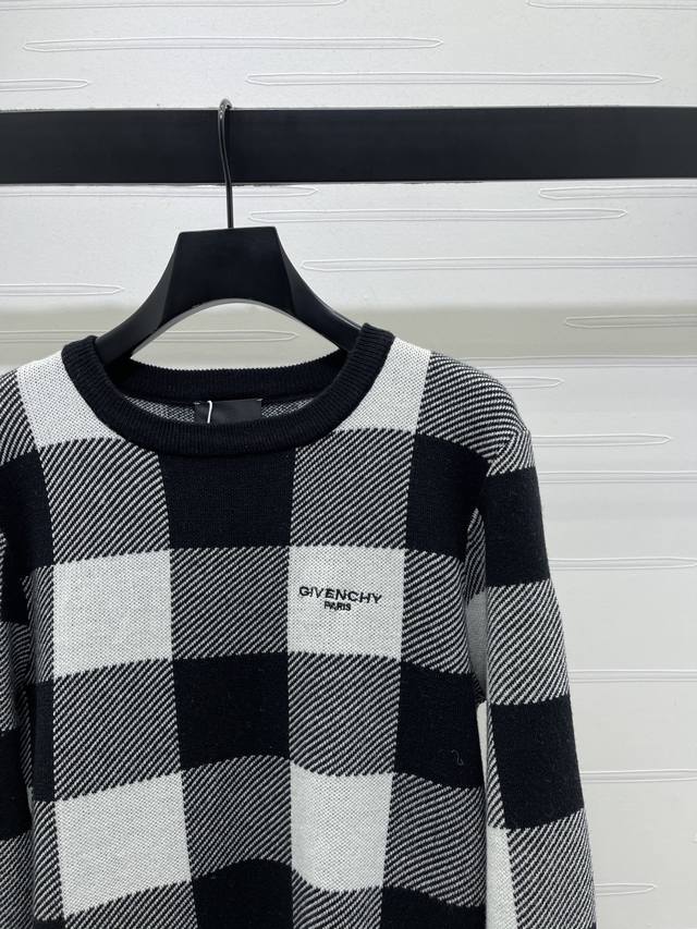 New Arrival! High-Quality Original Givench* 2025 Autumn/Winter Collection! Color-blocked Plaid Pullover Sweater! Made with custom wool yarn, soft, skin-friendly, comfortable, and stylish. Crew neck, long sleeves, and a contrasting plaid pattern throughout. Embroidered letter logo on the chest highlights the brand's style. A classic fit that flatters all body types. Playful, youthful, and flattering. Perfect for everyday wear or parties! 1 color! Sizes SM-L3! High-quality bulk order.