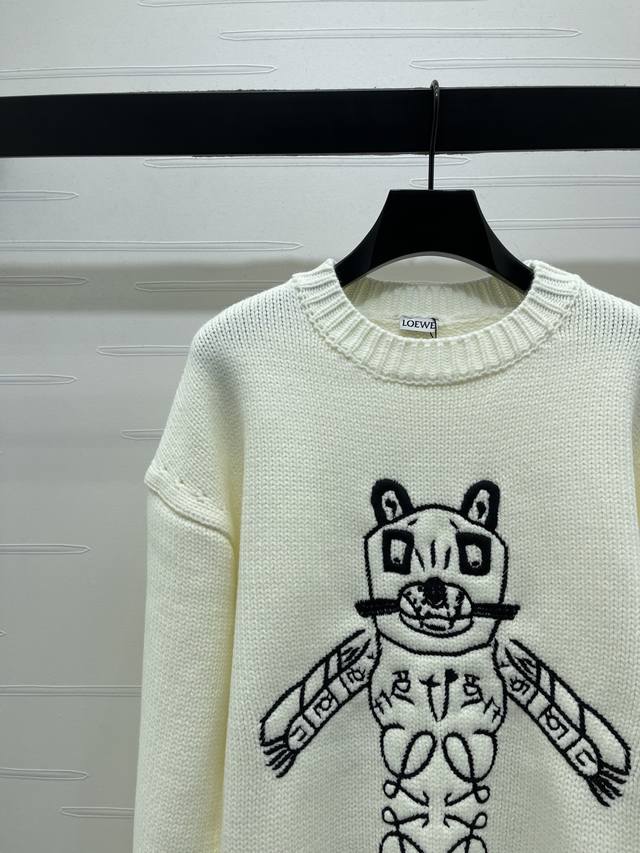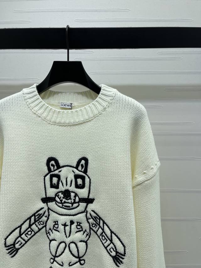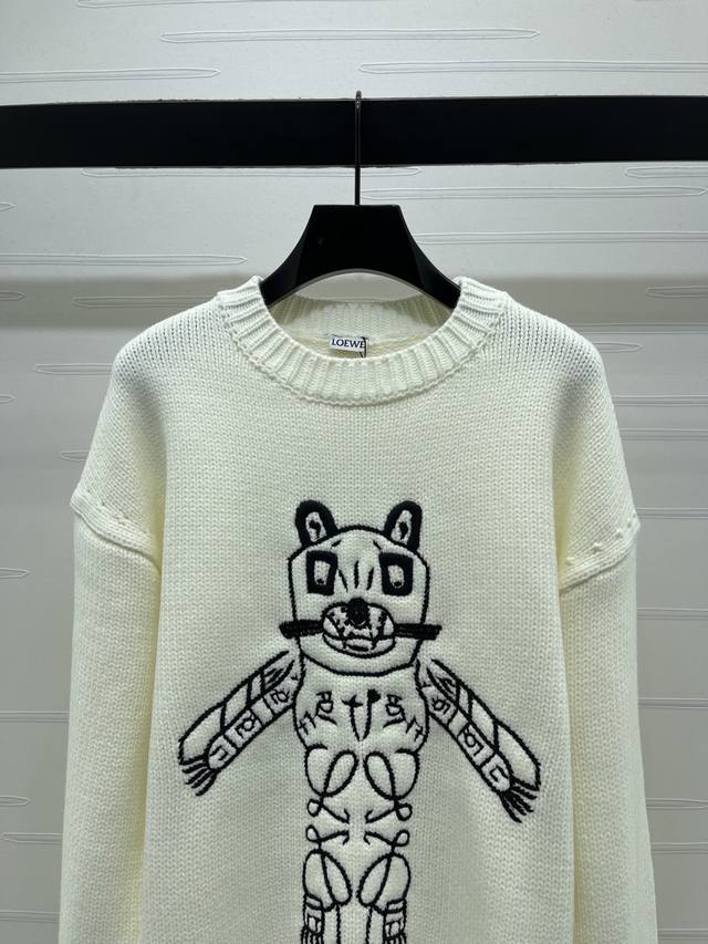 New Arrival! High-Quality Original Loew*2025 Autumn/Winter Collection! Embroidered Doraemon Knit Sweater. Loewlouis Wain Collaboration Series# Made with custom Yb wool yarn, high-quality texture, comfortable and soft. Crew neck pullover sweater cut, fine plain knit texture, ribbed edging throughout, easily highlighting perfect details and texture. The Doraemon pattern is outlined in a hand-drawn cartoon style, with the legs forming a totem logo, full of subtle brand details. The style is refreshing and fashionable, perfect for a stylish and casual look! 1 color! Sizes SM-L3! High-quality bulk order.