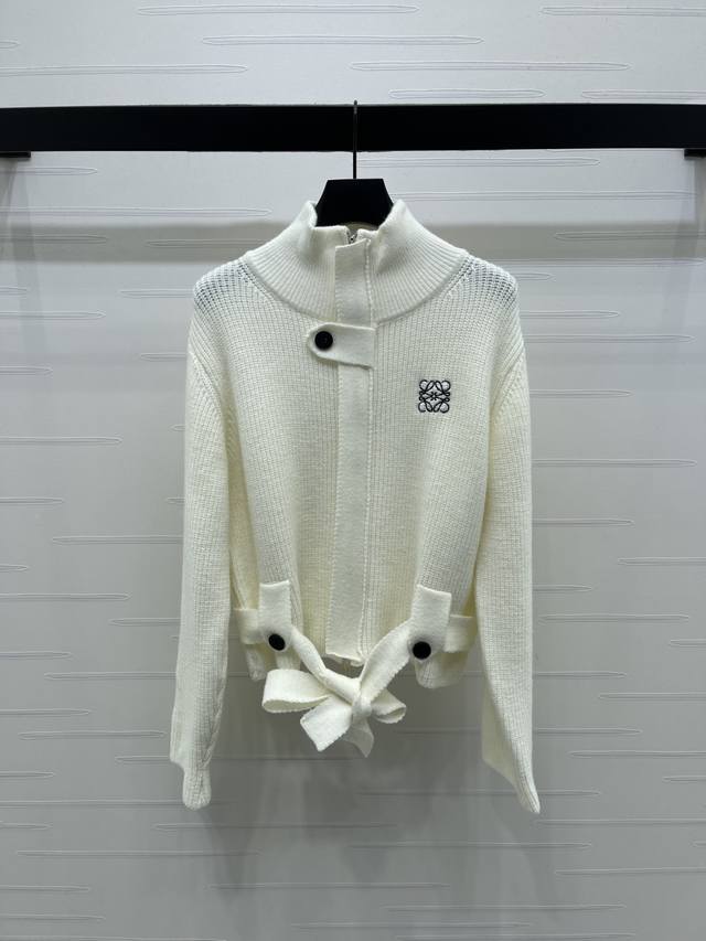 New Arrival! High-Quality Original Loew*2025 Autumn/Winter Latest Collection! Belted Stand Collar Cardigan! Custom imported wool knit material, high-quality, comfortable, and soft with a distinct texture. The stand collar and long sleeves create a flattering silhouette. The solid color base exudes a gentle temperament, while the wide belt at the waist accentuates curves, creating a subtly sexy and sophisticated look. A simple and versatile autumn/winter everyday piece! 2 colors! Sizes SM-L3! High-quality bulk order.