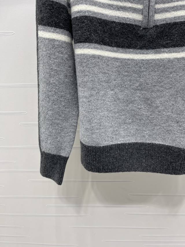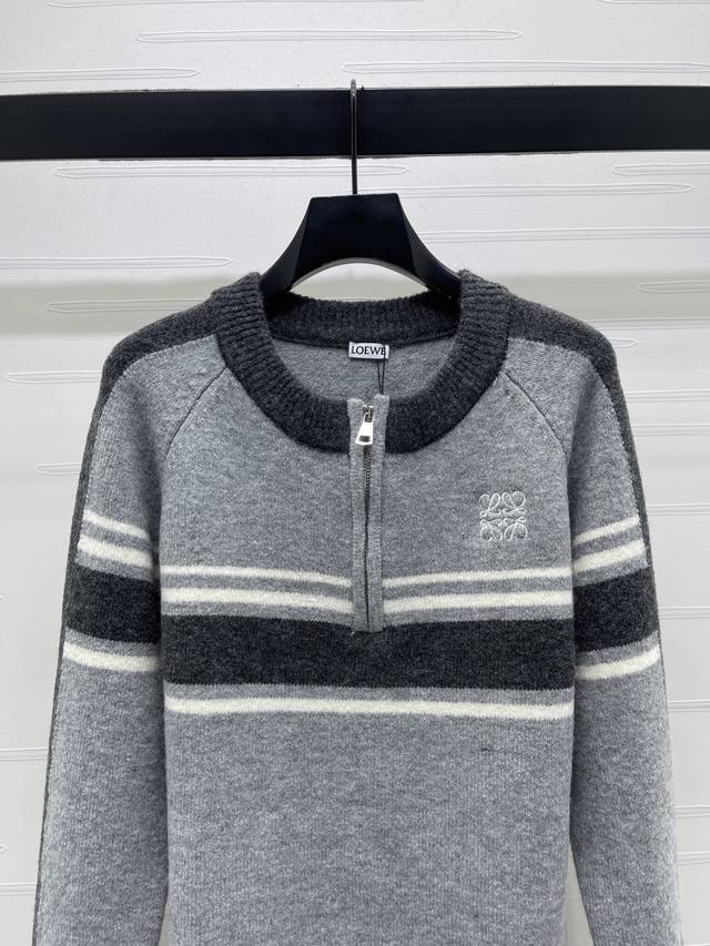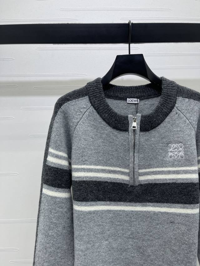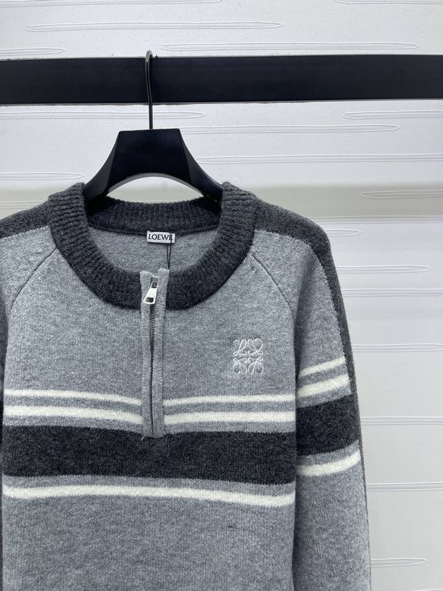 New Arrival! High-Quality Original Loew*2025 Early Autumn Collection! Half-Open Zipper Pullover Knit Sweater! Custom wool blend yarn material, high-quality, comfortable, and soft texture with distinct ribbed edges on the neckline and cuffs. Contrasting color- blocked stripes on the body, embroidered totem design on the chest, and micro-label design add rich texture. Regular slim fit, flattering for all body types and ages. A simple and versatile everyday style for autumn and winter! Available in 2 colors! Sizes SM-L3! High-quality bulk order A706B350C DDD