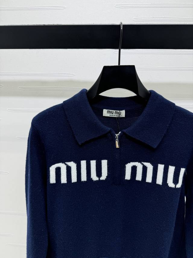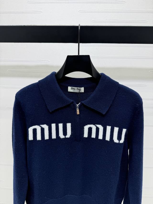 New Arrival! High-Quality Original Miu Mi* 2025 Autumn/Winter Collection! Collared Knit Long-Sleeve Top! Custom imported wool knit material, comfortable and soft. The collared knit long-sleeve top features a tailored cut with a half-open zipper adjustment design, adding a sense of style and layering. The iconic embroidered logo on the chest highlights the brand's identity. Effortlessly stylish and perfect for a preppy look! Available in 3 colors! Sizes SM-L3! High-quality bulk order A706B400C DDD
