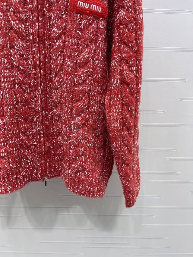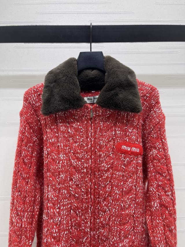 New Arrival! High-Quality Original Miu Mi* 2025 Autumn/Winter Collection! Fluffy Snowflake Dot Zip-Up Cardigan with Fur Collar! Crafted from custom Yb wool yarn, it's delicate, soft, and incredibly stretchy. The elegant hooded zip-up cardigan features a finely textured knit throughout, with two-tone snowflake dots interwoven. Ribbed elastic trim visually slims the figure, and a 3D logo on the chest adds a touch of sophistication. A basic style with warmth and a strong retro-preppy vibe, perfect for transitional wear, fashionable, youthful, and easy to wear anytime. Available in 3 colors! Sizes SM-L3! High-quality bulk order A706B470C DDD