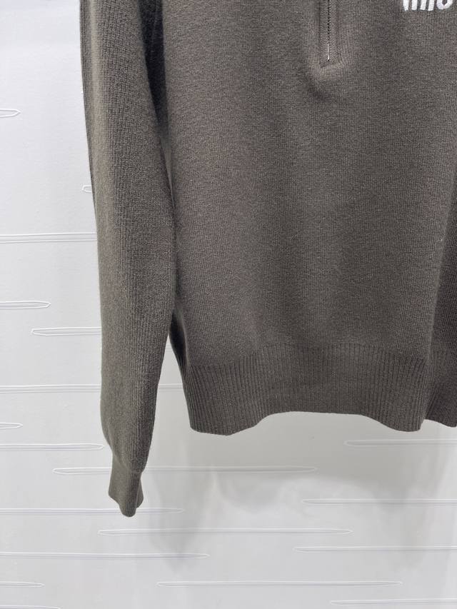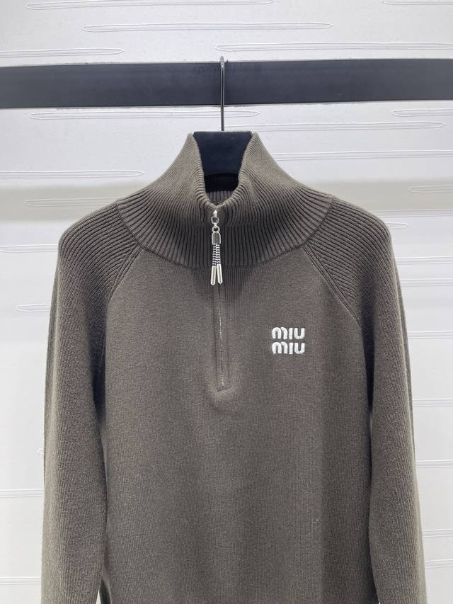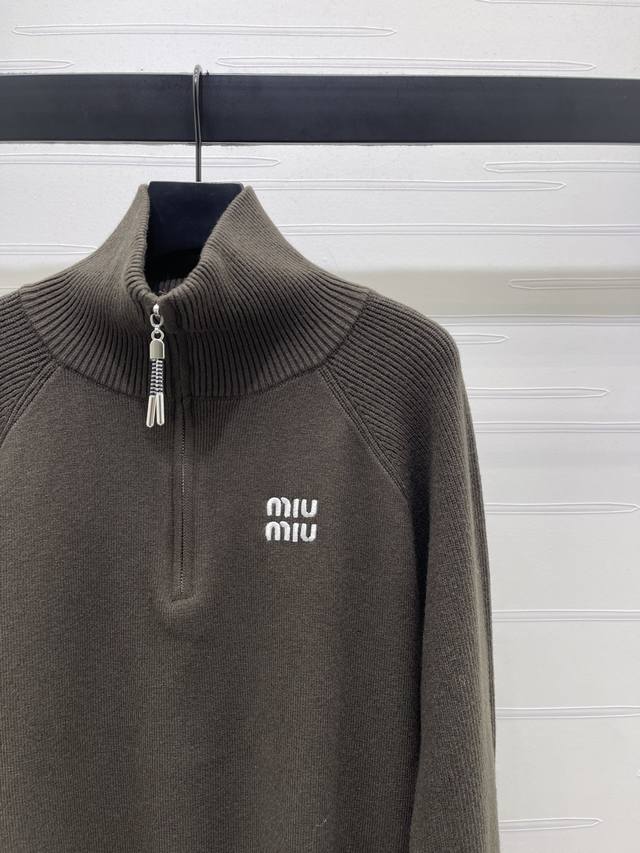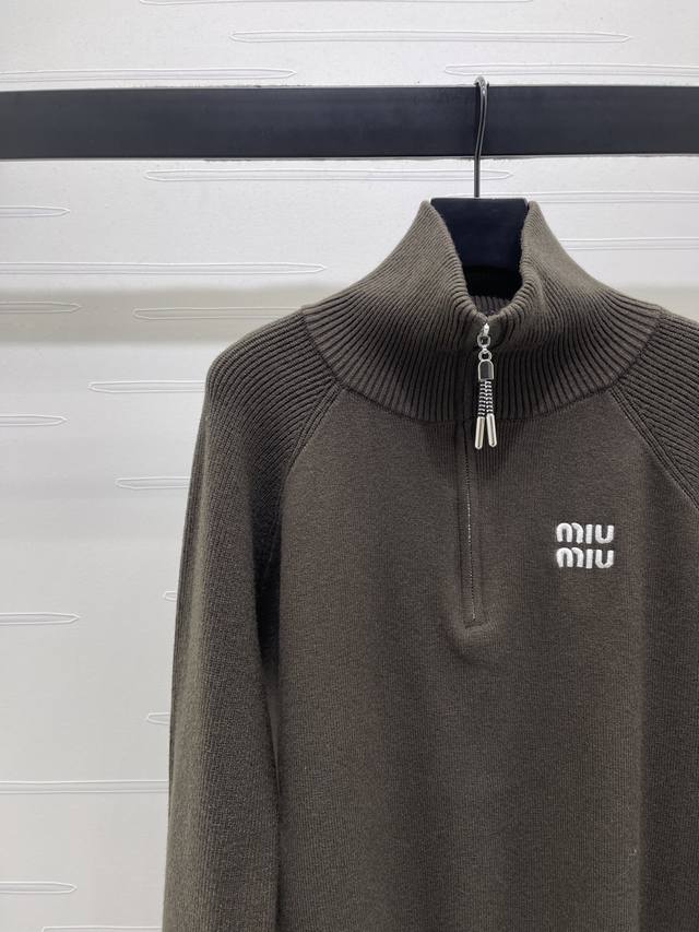 New Arrival! High-Quality Original Miu Mi* 2025 Autumn/Winter Collection! Stand Collar Zipper Knit Cardigan! Made with custom wool yarn, it boasts a delicate texture, is comfortable and easy to wear. The cardigan features an embroidered logo on the chest, showcasing the brand's style. Versatile and suitable for all ages and skin tones, it gives a relaxed, vacation-like feel and is perfect for a youthful and fashionable look! Available in 2 colors! Sizes SM-L3! High-quality bulk order A706B370C DDD