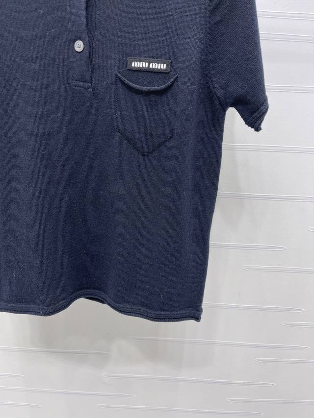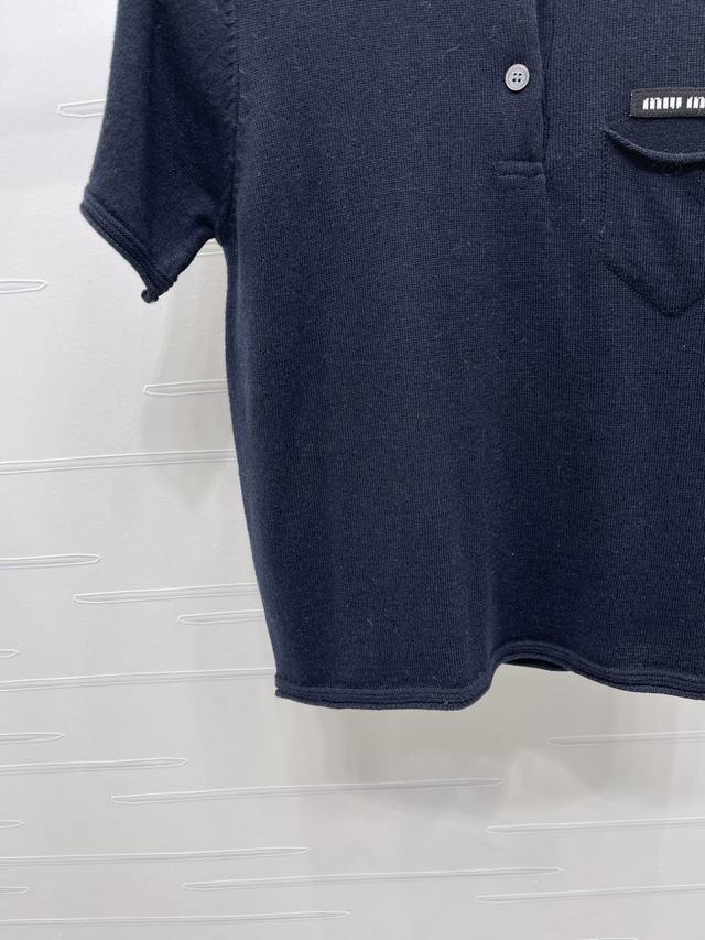 New Arrival: High-Quality Original Miu Mi*2026 Early Spring Collection! Collared Knit Short-Sleeve Sweater, crafted from custom wool yarn, boasting a luxurious feel and exceptional softness. The collared short-sleeve sweater features a half-open button closure and a delicate, dense texture, exuding refinement. The rolled-edge chest pocket is adorned with a logo decoration, showcasing a sophisticated style. The regular fit flatters all body types and ages, a simple and versatile everyday piece for all seasons! Available in 3 colors! Sizes SM-L3! High-quality bulk order.